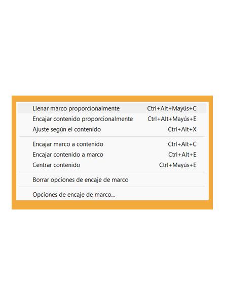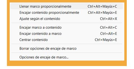Al hacer “clic derecho” y presionar encaje > llenar marco proporcionalmente, lograrás encajar el tamaño del marco colocado.