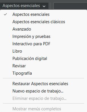 Crea y manipula los documentos y archivos empleando distintos elementos como paneles, barras y ventanas. A todos estos elementos se les denomina espacio de trabajo, donde puedes adaptarlo a tu modo seleccionando los espacios de trabajo preestablecidos. a c