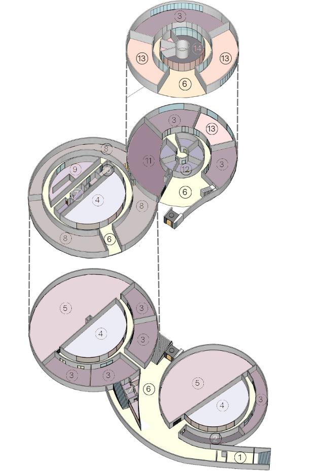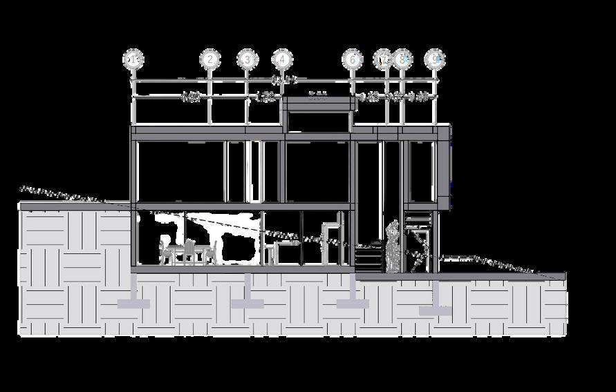 PATIOS CONFERENCIAS CIRCULACION SANITARIOS RESTAURANTES CAFETERIA OFICINAS AUDITORIO TALLERES SALAS DE EXPOSICION TEMPORAL PATIO DE ESCULTURAS 1. 2. 3. 4. 5. 6. 7. 8. 9. 10. 11. 12. 13. 14.