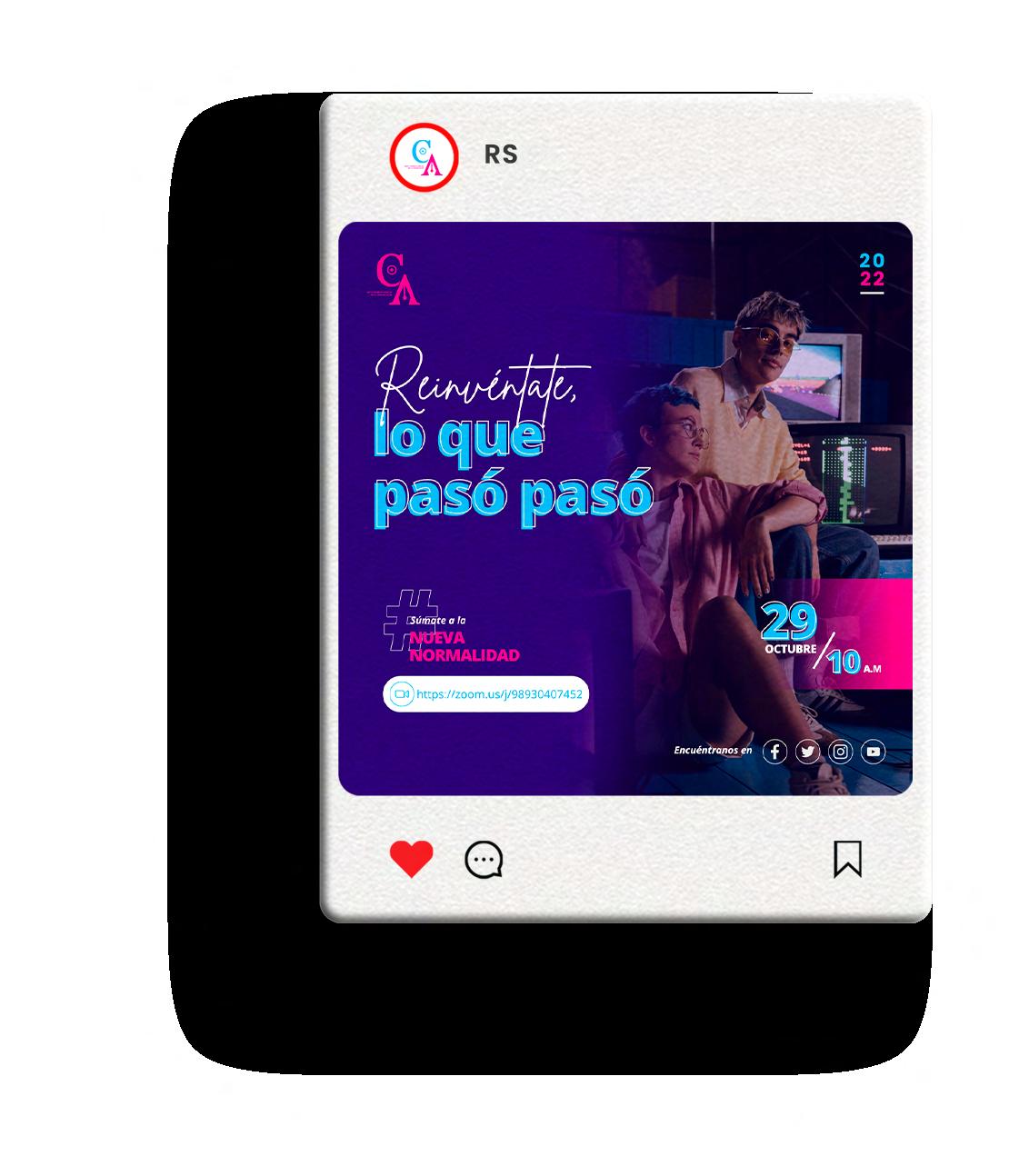 Realizar un Flayer de invitación para la videoconferencia de un proyecto de RS para el regreso a la nueva normalidad post COVID.