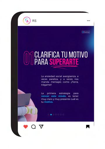 Realizar un carrusel con técnicas para afrontar ansiedad social ante la convivencia con otras personas en la nueva normalidad post COVID para un proyecto de RS.