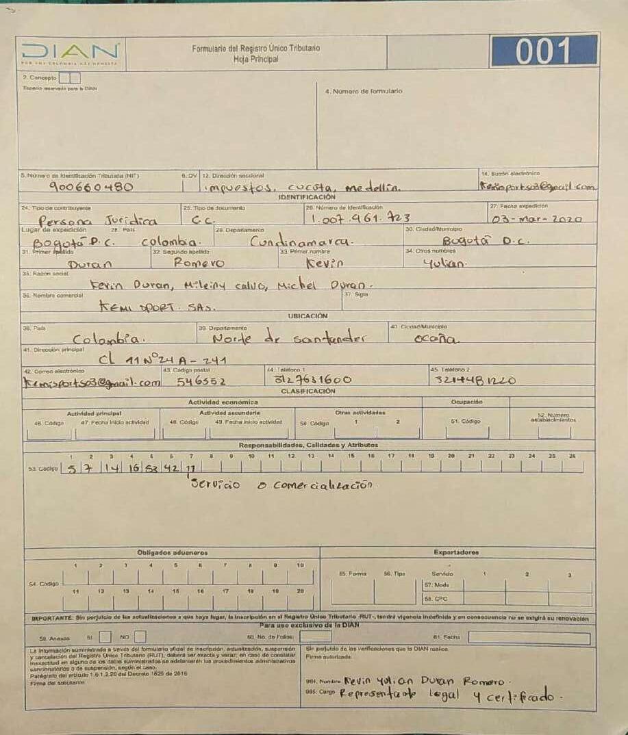 KEMI . SPORT S.A.S FIRMA Y SELLO