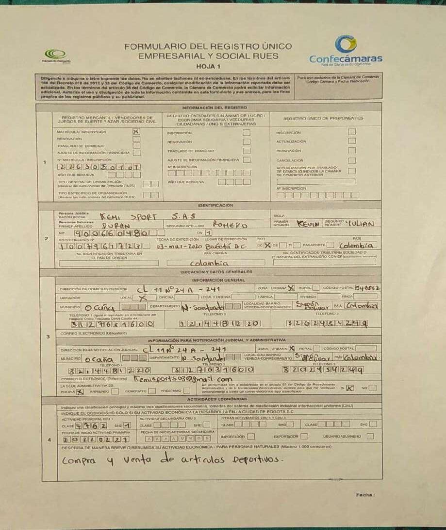 SUCURSAL. KEMI SPORT S,A,S OBSERVACIONES.