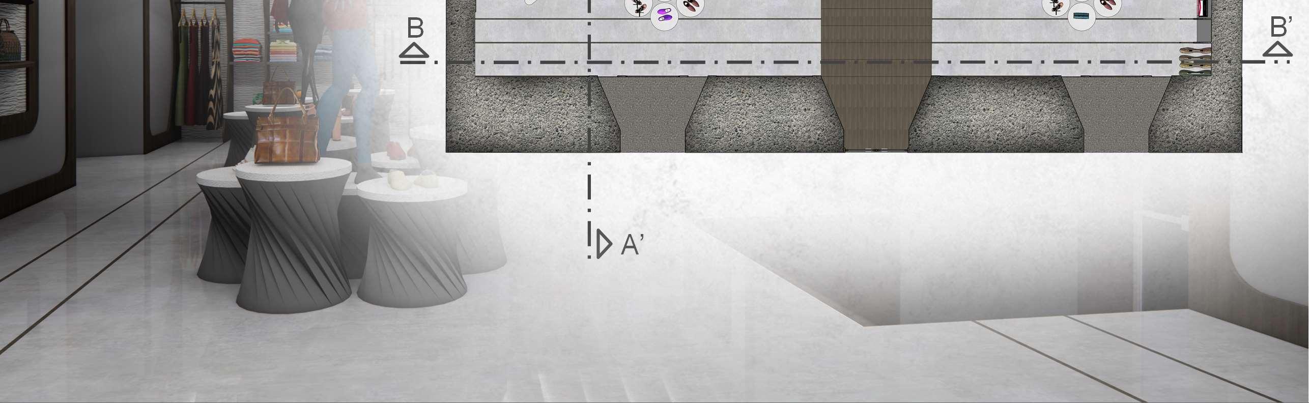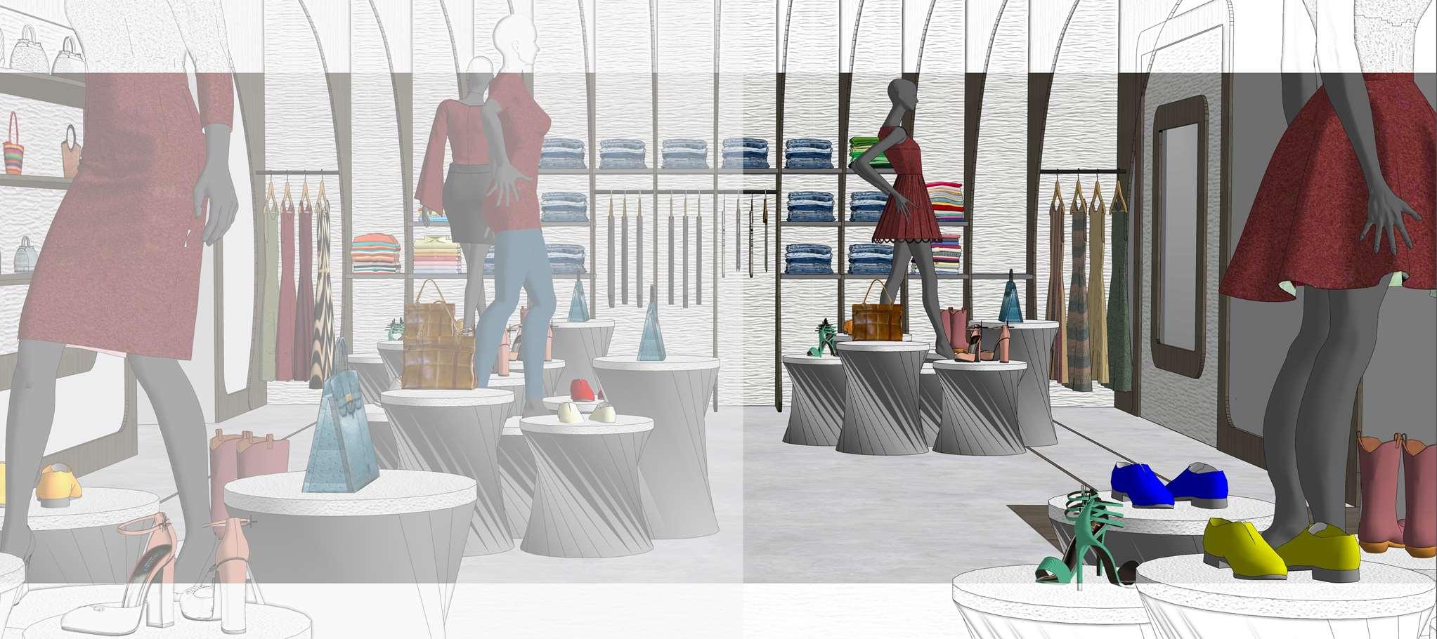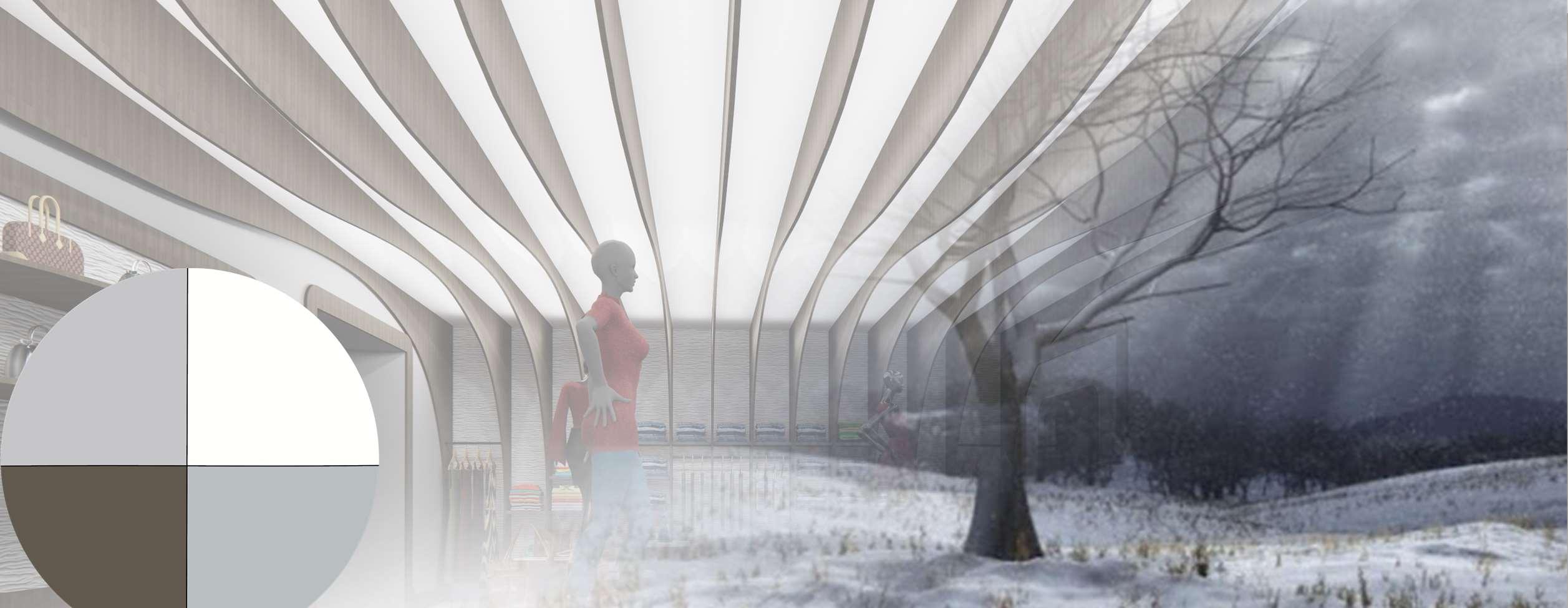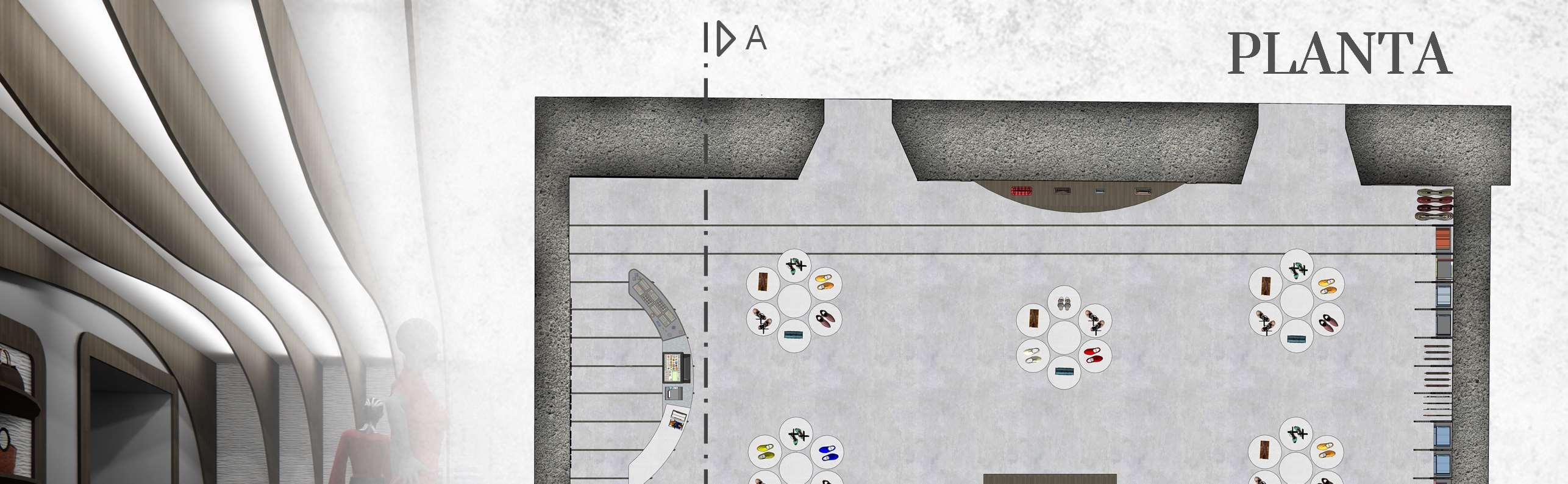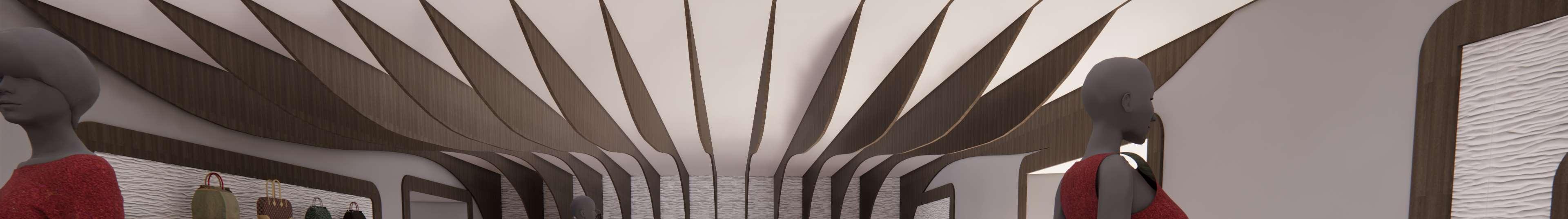 Diseñodeunaboutiquedonde sehatomandocomo inspiraciónformasorgánicas paracontrarrestarelespacio rectangularqueactualmente poseeeláreadeintervenir.