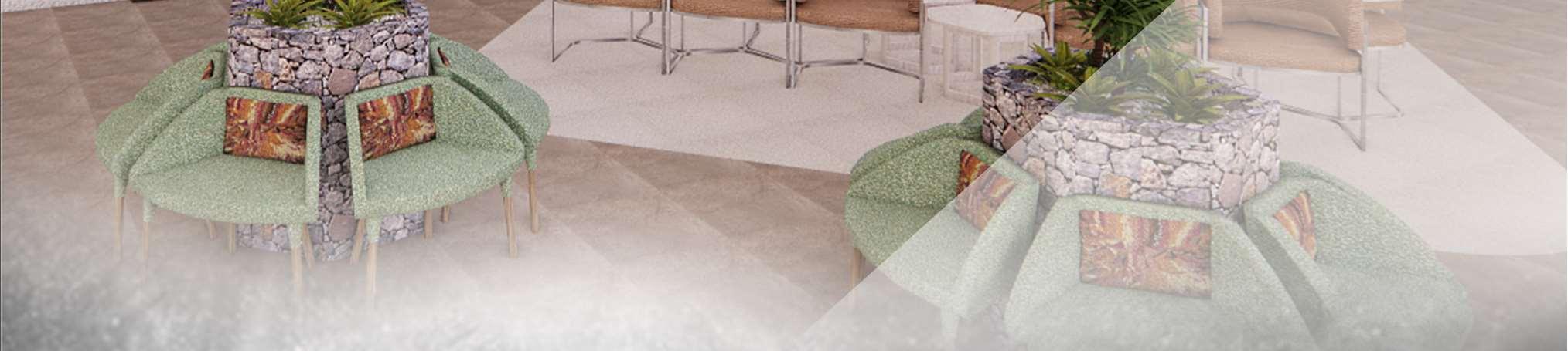 Diseñodemobiliario Modularhexagonal,para espaciosampliosde espera.