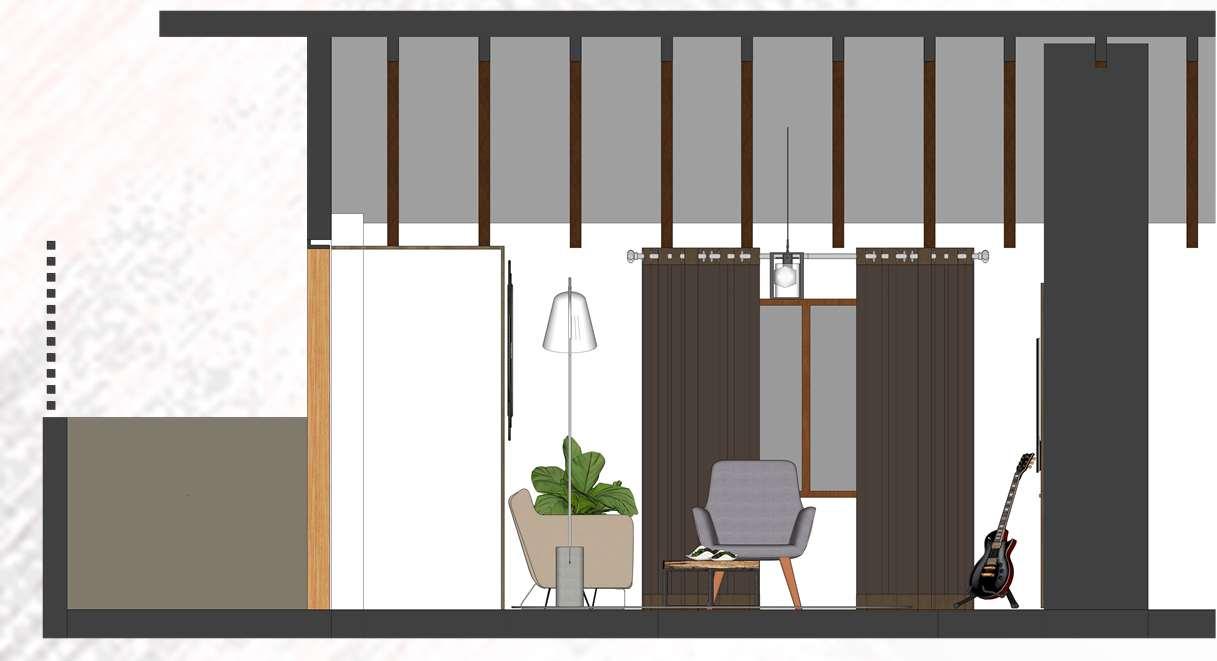Diseñodeunespacioderelajación,paraunaparejaderecién casados.Elespacioesundepartamentoreducidodedos niveles.