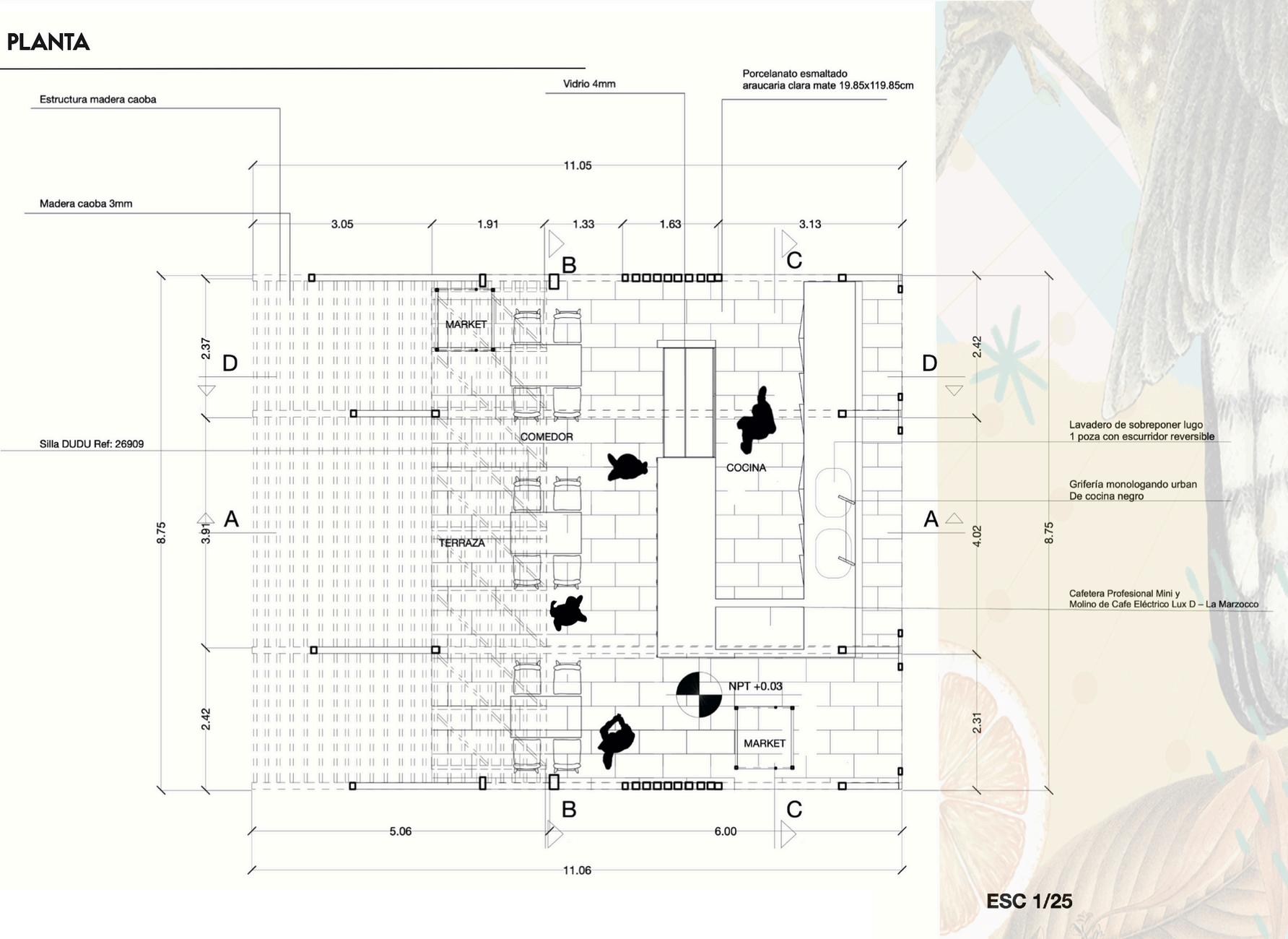 Dibujo a mano alzada- Propuesta de cafetería "Raw Cafe".