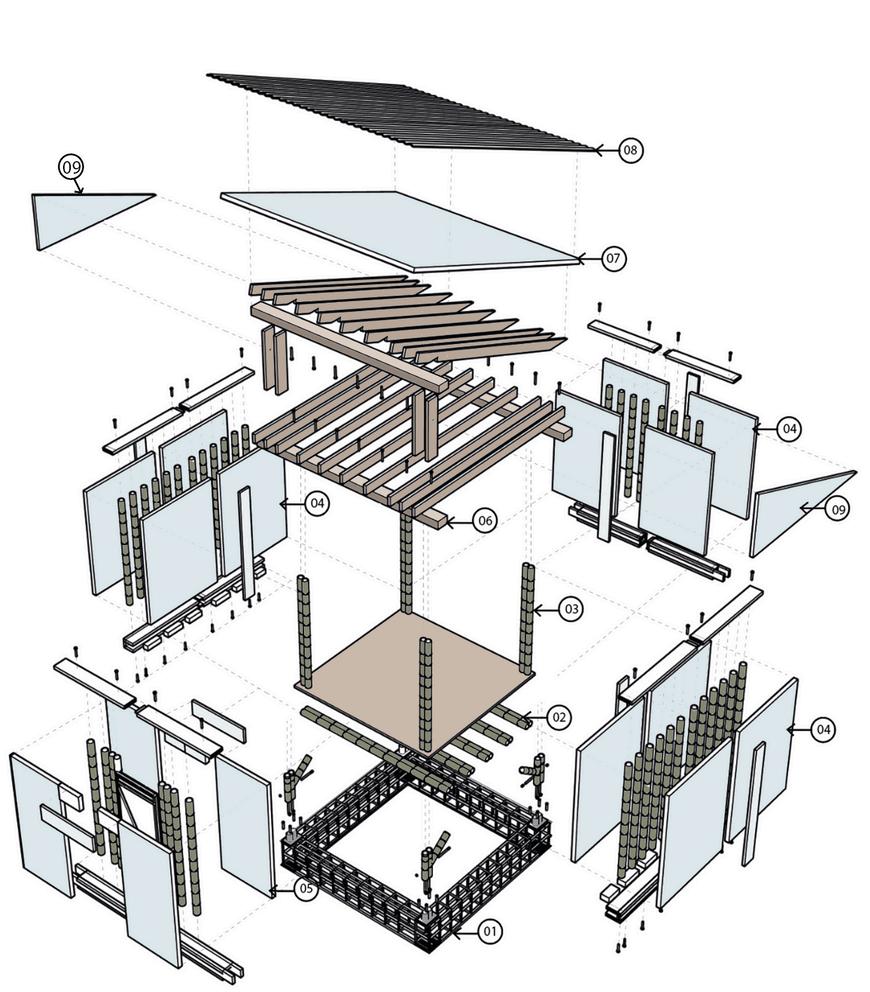 Busca una solución económica al problema de vivienda para poblaciones afectadas por catástrofes naturales. Puede ser construida en un tiempo de 4 días.