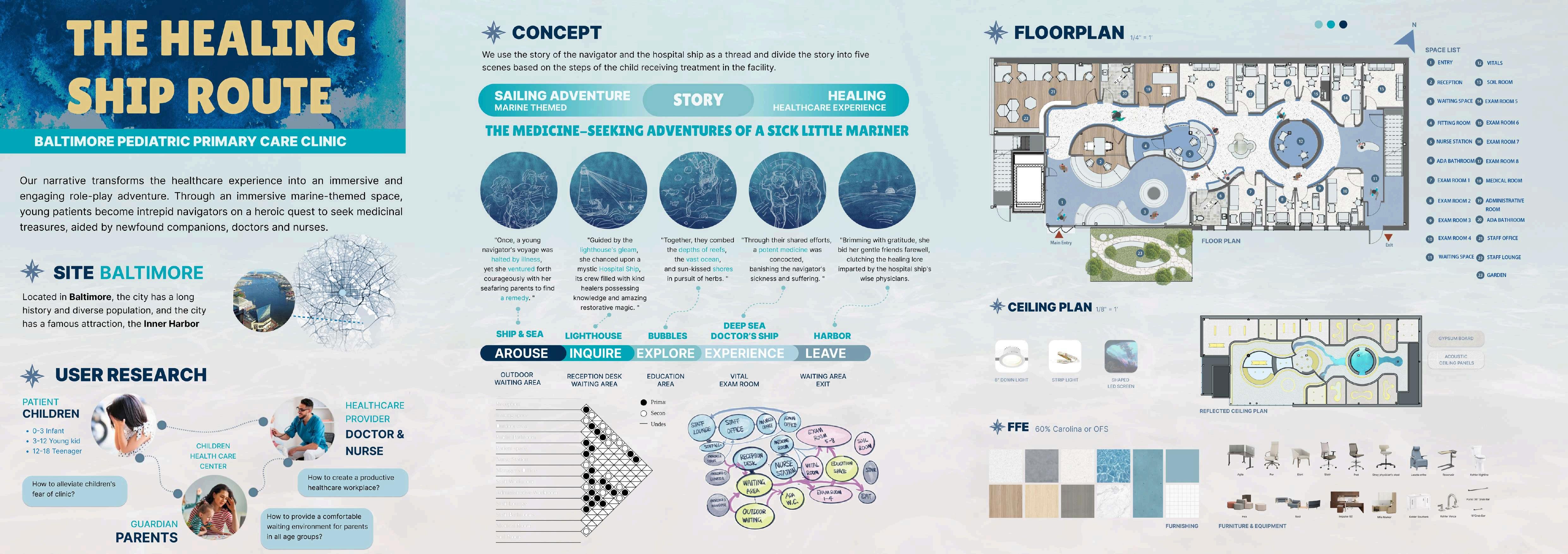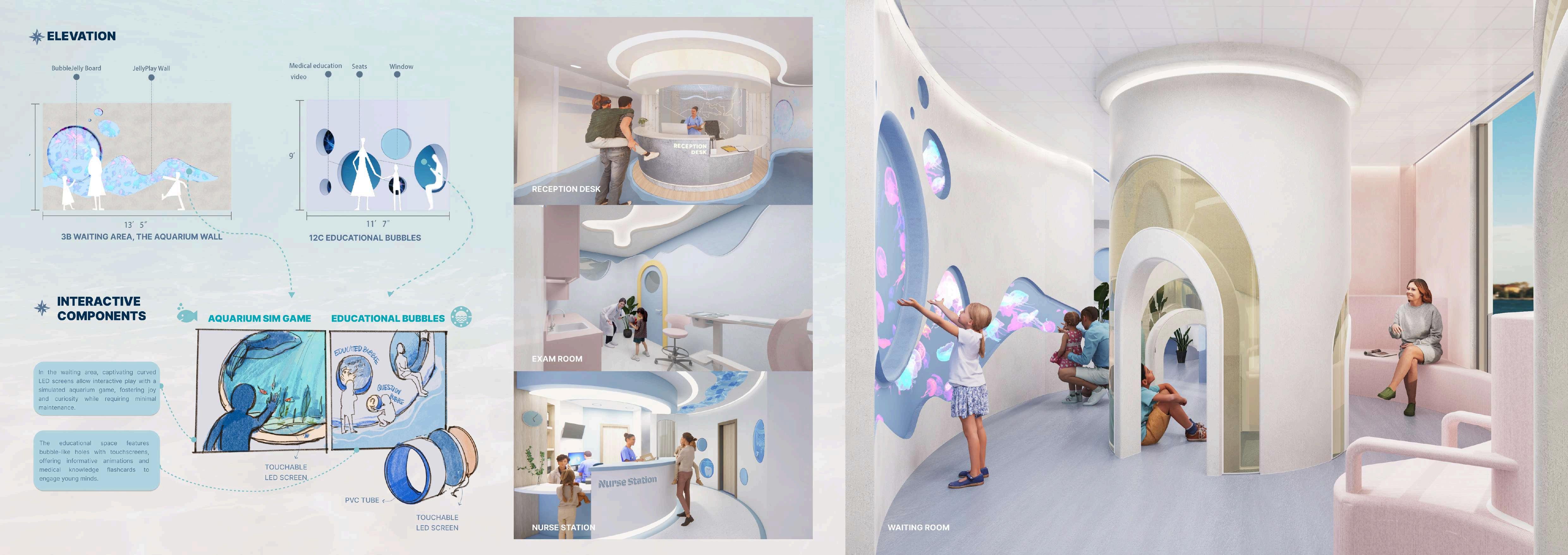 Thedesignofthechldren'smedica space s nspredbymaritmeadventures,treatngyoung usersasbuddingsalorsembarkingonahealingjourneywththeaccompanmentoftheirparents. Apayfulstorylnegudestheentireadventureanddiscovery utiizingarichspatialcompositionto allevatethepainoftreatmentandfearofthemedcalenvronmentforchildren.Thisfosters courageandcuriostyinexploringthespace,cutvatingasenseofsecurityandtrust,and ultimatelycompletingtherhopefulpathtohealth.