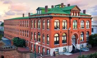 Locaton 115W HenrySt Savannah Georgia. Buit-in1892asHenryStreetEementarySchool EckburgHal consstsofthreestoriesofredbrickinQueenAnneReviva style andfeatureslavishterracottaornamentaton agabledcentral pavilon,andamonumenta archedentrance