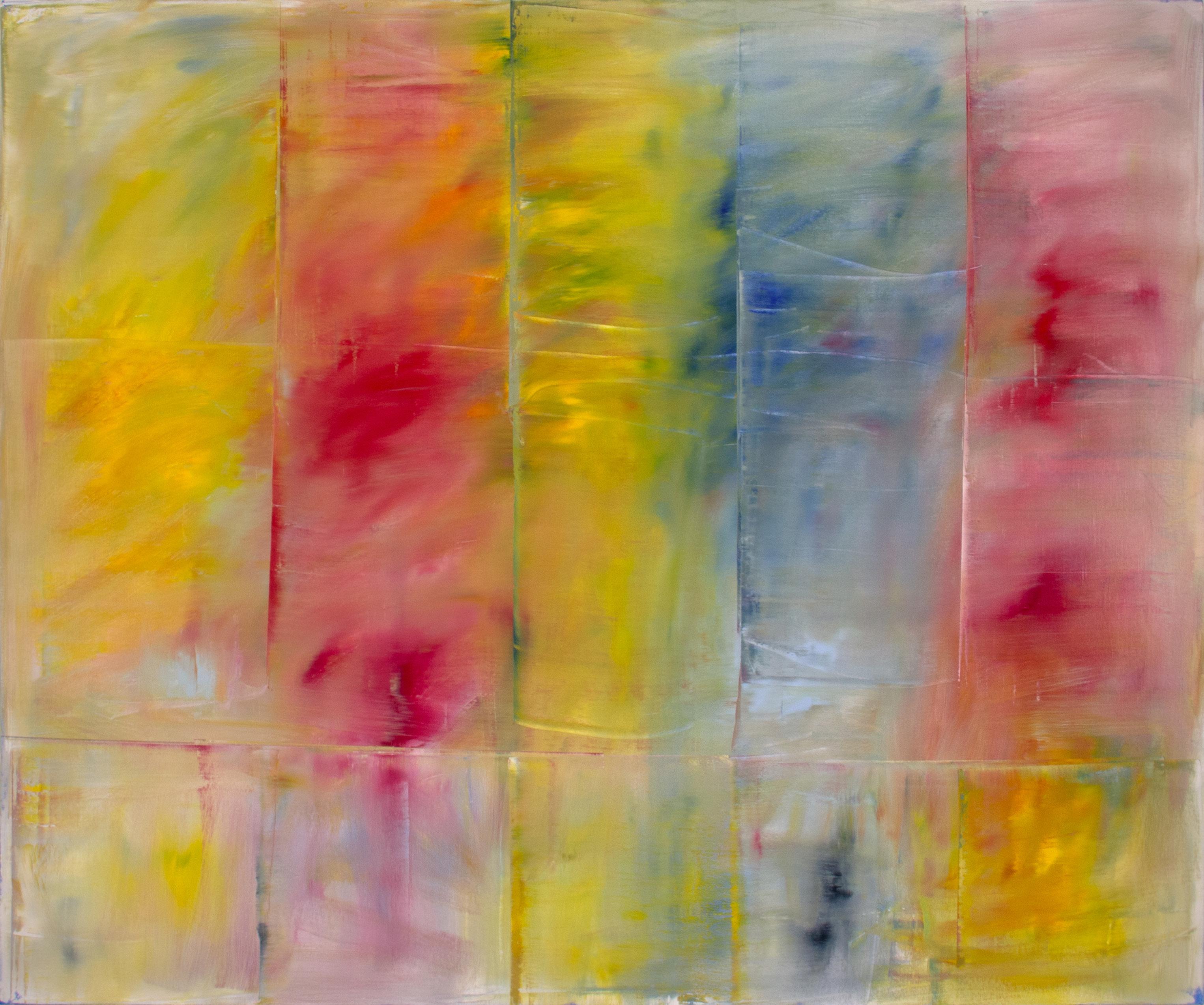 “I want to explore that tension between the surface itself, including the oil paint on the canvas–and the the canvas. That tension oscillates bewtewen an space in the sense of the two-dimensional material