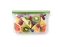 Nouveaux sacs plats pour davantage de possibilités et d’options de rangement au réfrigérateur et au congélateur. Les sacs étant dépourvus de base, les liquides restent en contact avec l’aliment de manière uniforme.