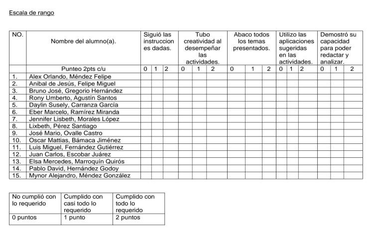 La redacción de cada una, la elaboración de la prueba escrita y la escala de rango con especificaciones de lo que se calificara.