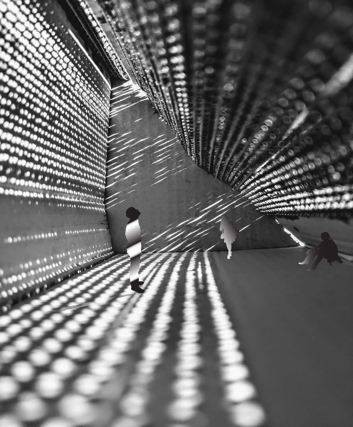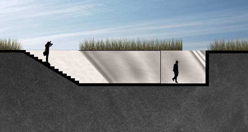 The two subtractive spaces were designed to bring the traveler in and out of the site. Immediately they face a decision as the entrance branches in two directions. The perspective images above show the experience each traveler will go through as they make their way further into each space. There is a mix of compression and expansion they will feel when entering the larger space. The exit consists of shear grade elevation as they make their way back to ground level.