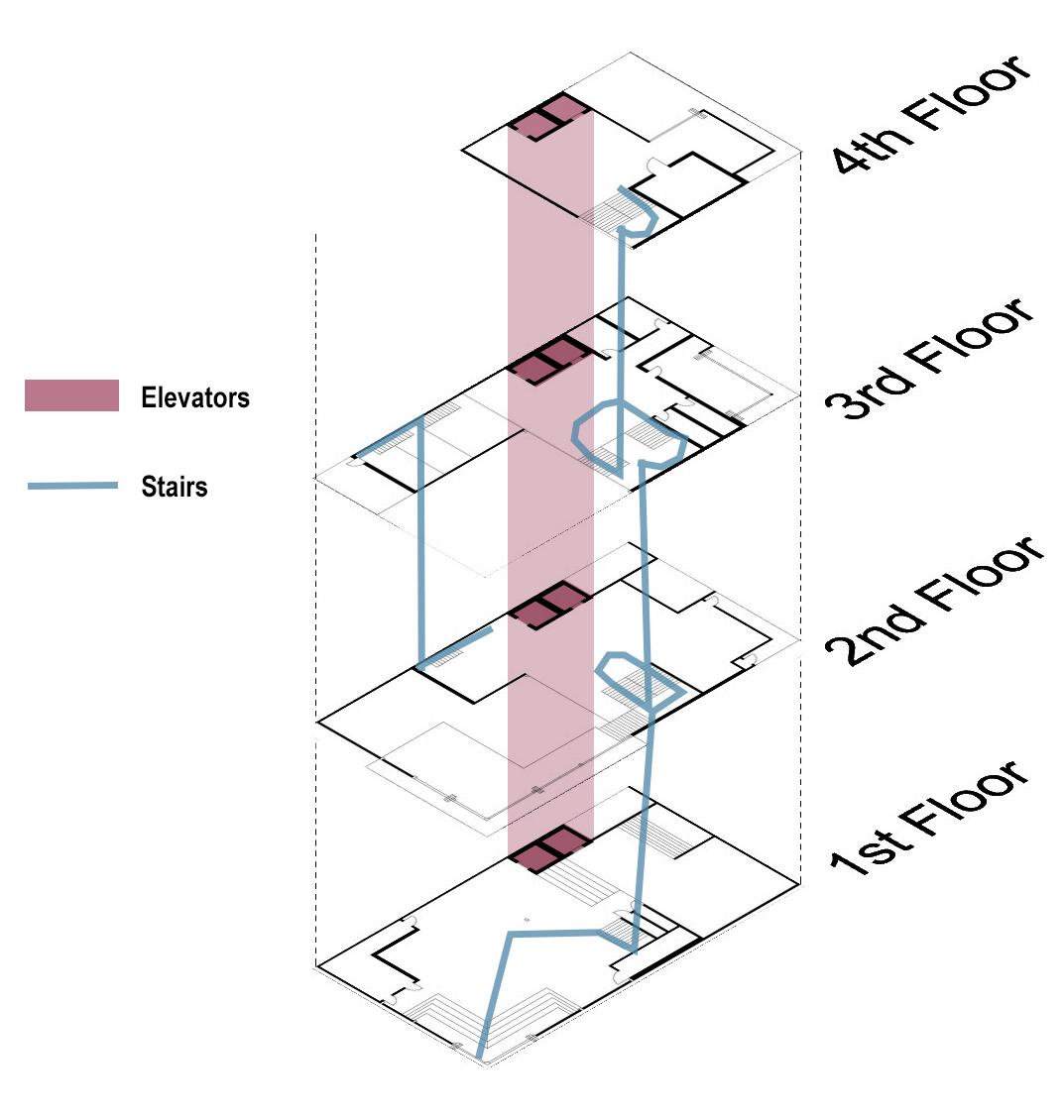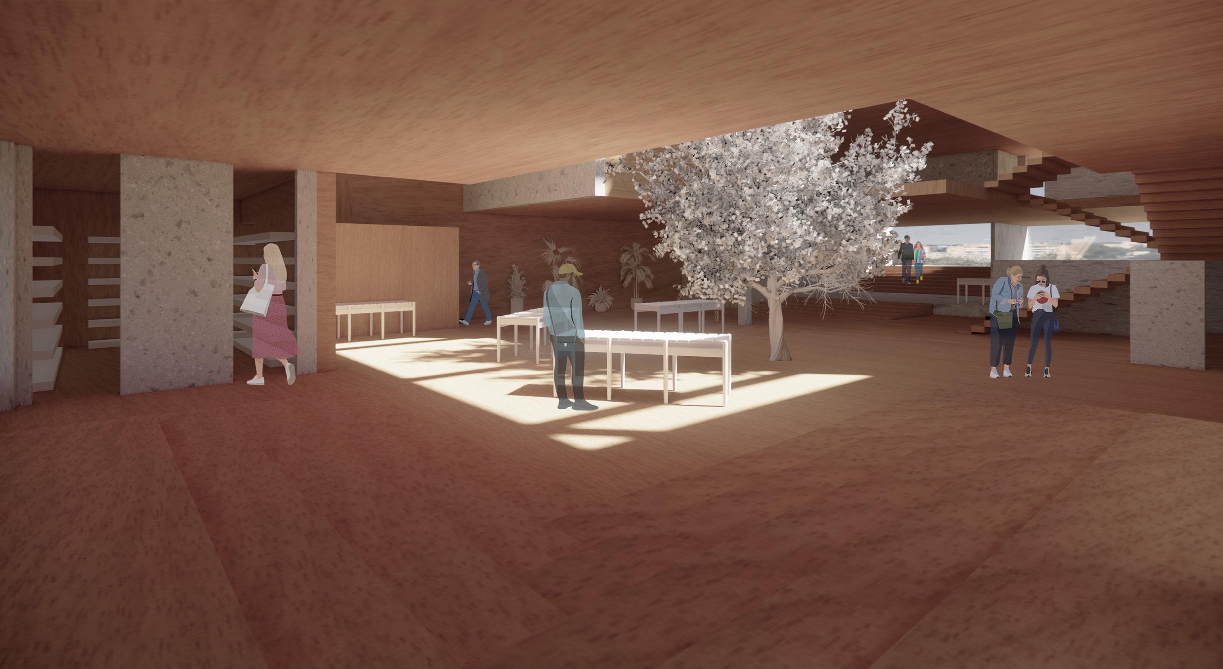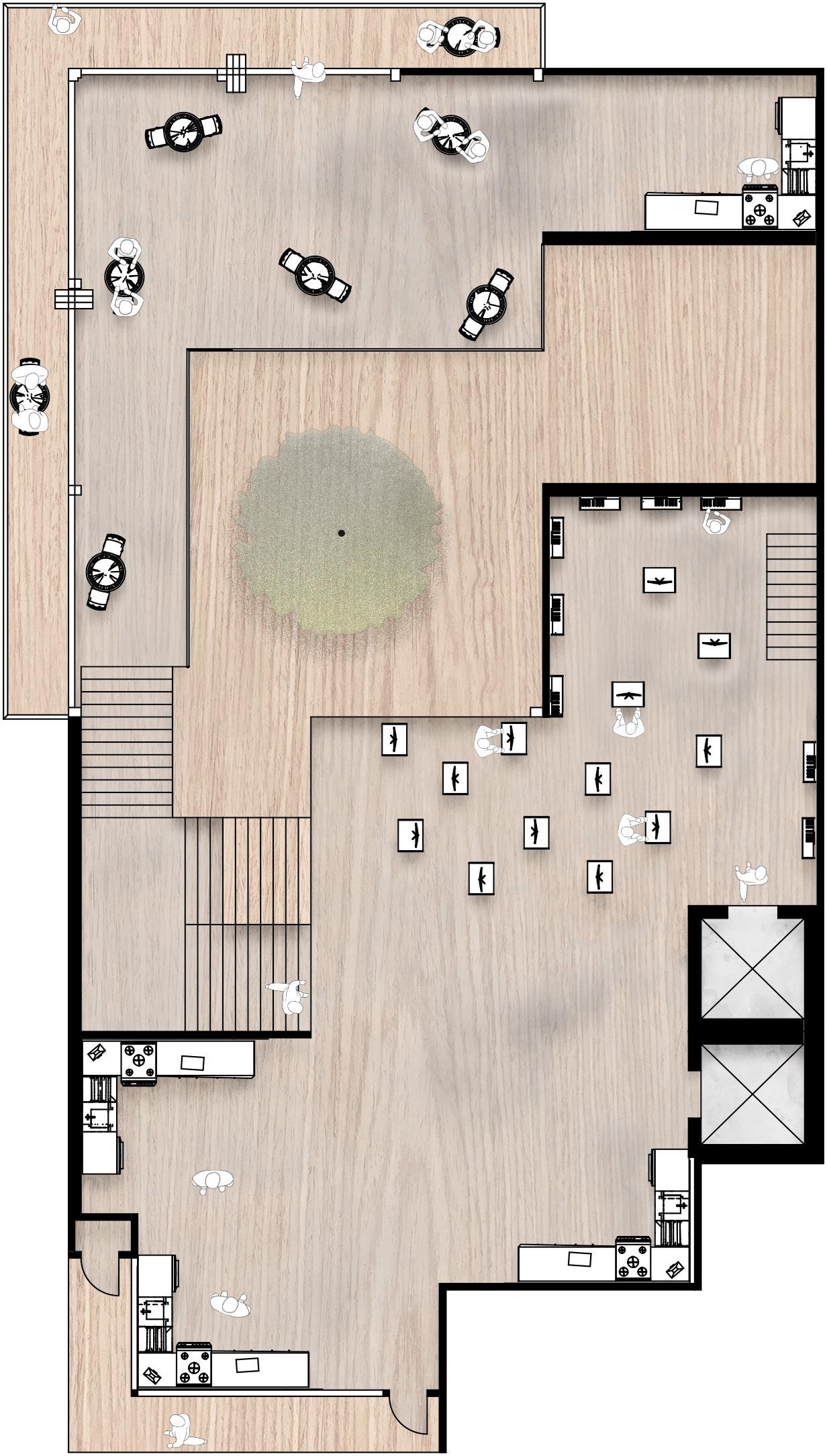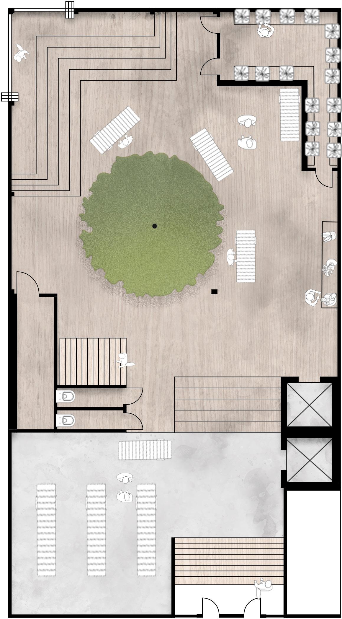 The first-floor market is meant to be an addition to the Columbia City Food Market held on Sundays. The second floor is the beginning of the library space with computer desks that bleeds into the kitchen spaces where classes would be held utilizing some of the locally grown foods. The third floor is a space for the employees and meetings to be conducted with the local community. The rooftop is a space to feature the outdoor growing systems and packaging, as well as the vertical, growing wall that drapes down the southern wall to maximize the sun.