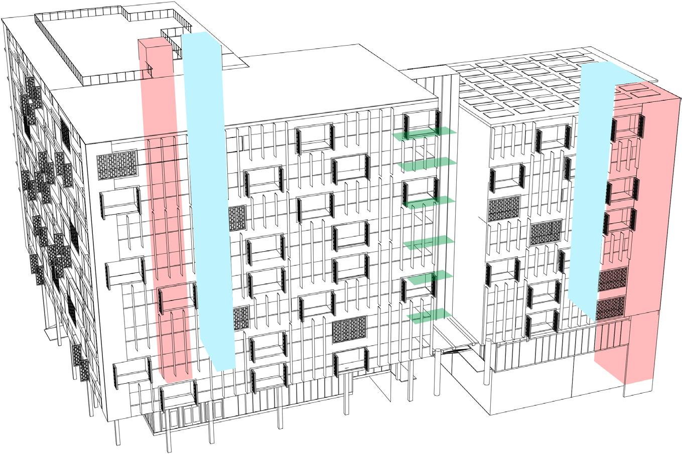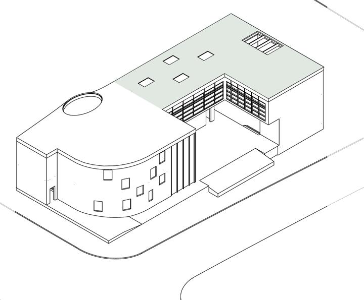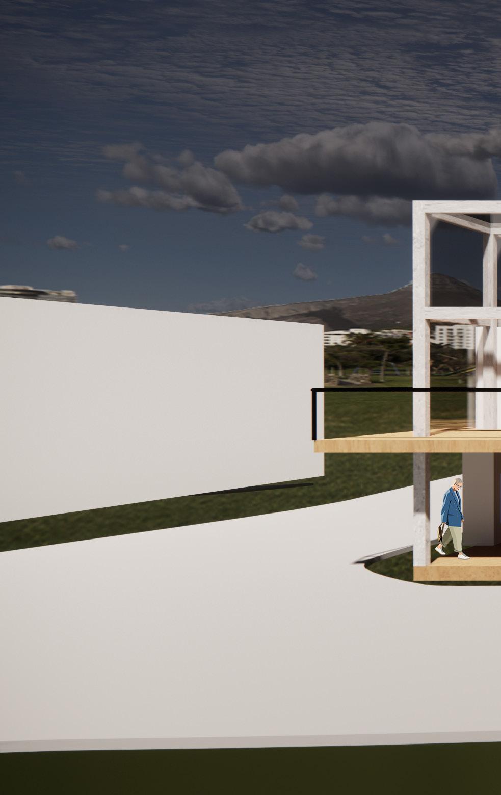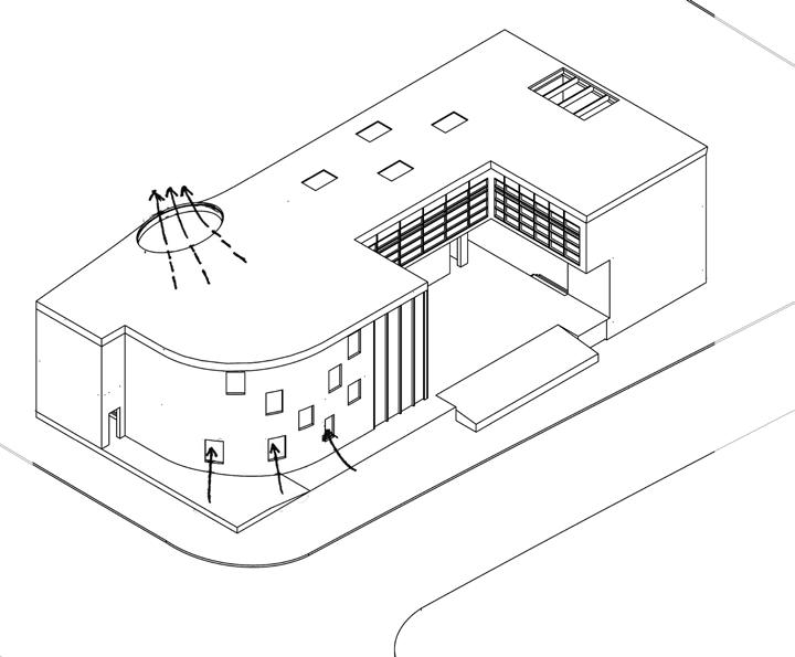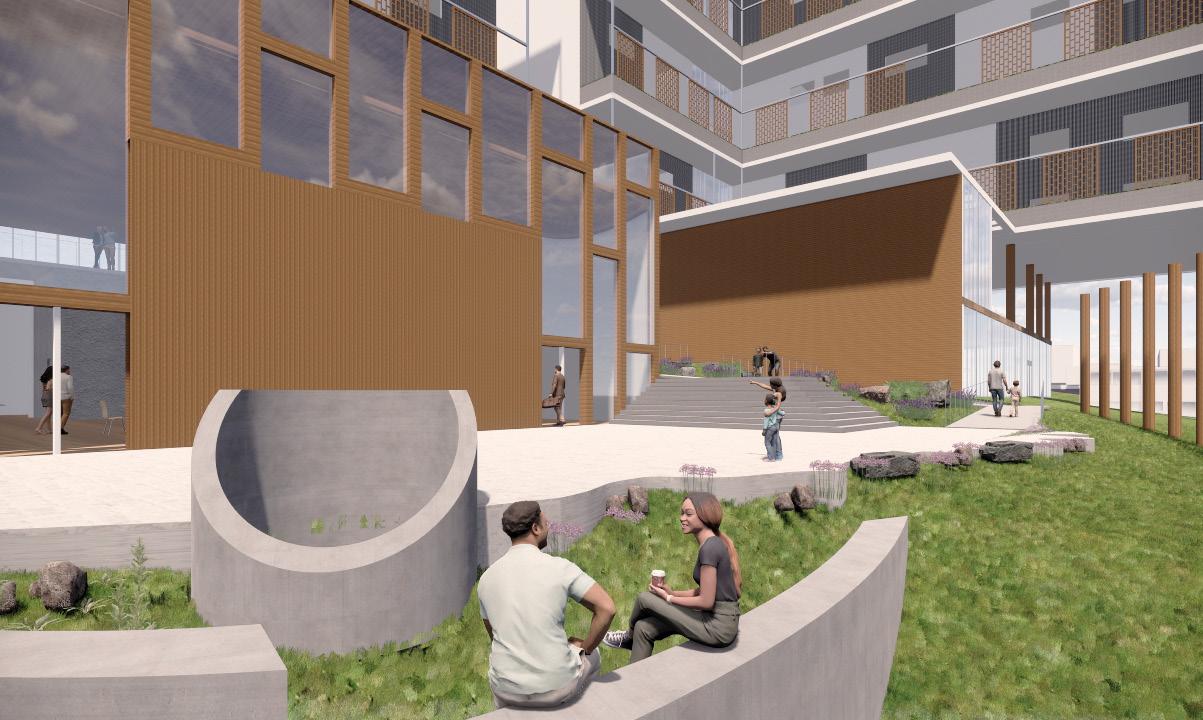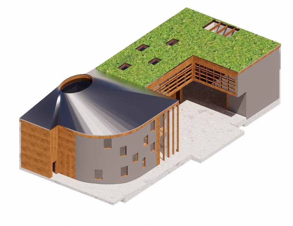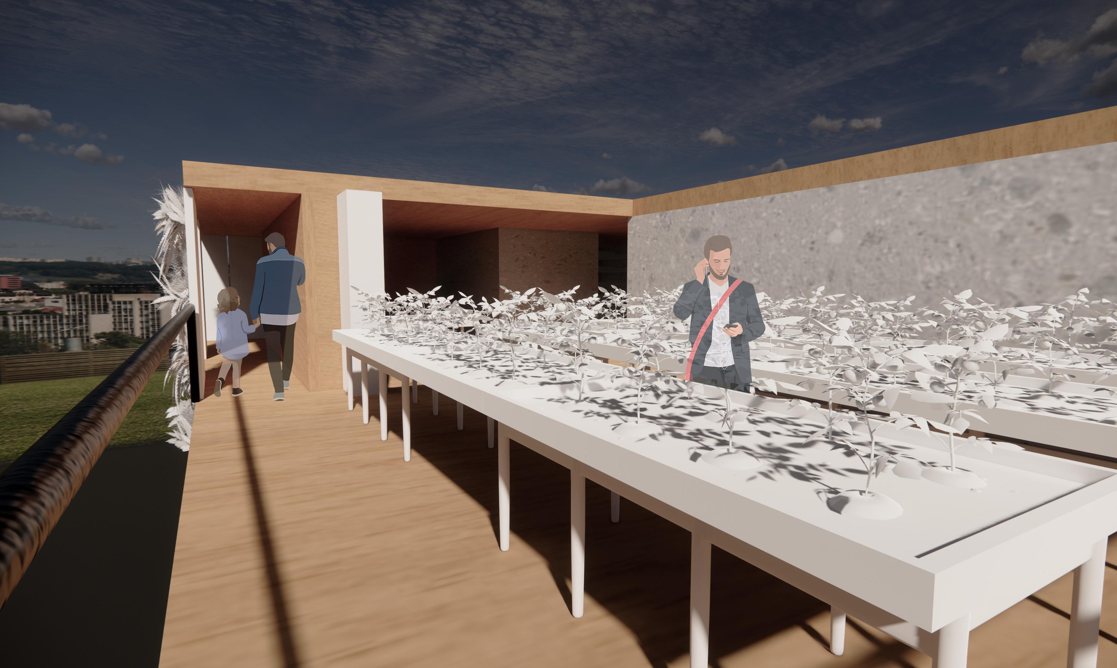 There is a concerted effort to include biophilic design attributes within the walls of the structure and on the rooftop. Each element that is emphasized leads back to the mental health focus of the local community.