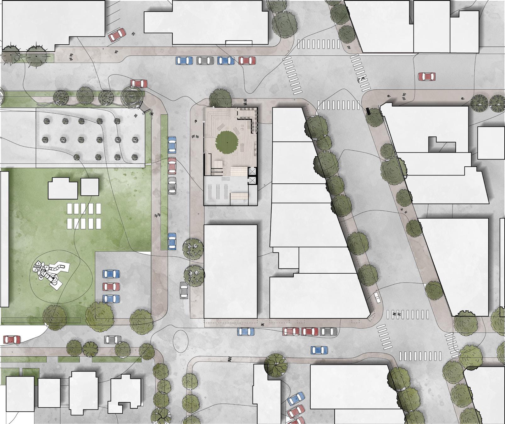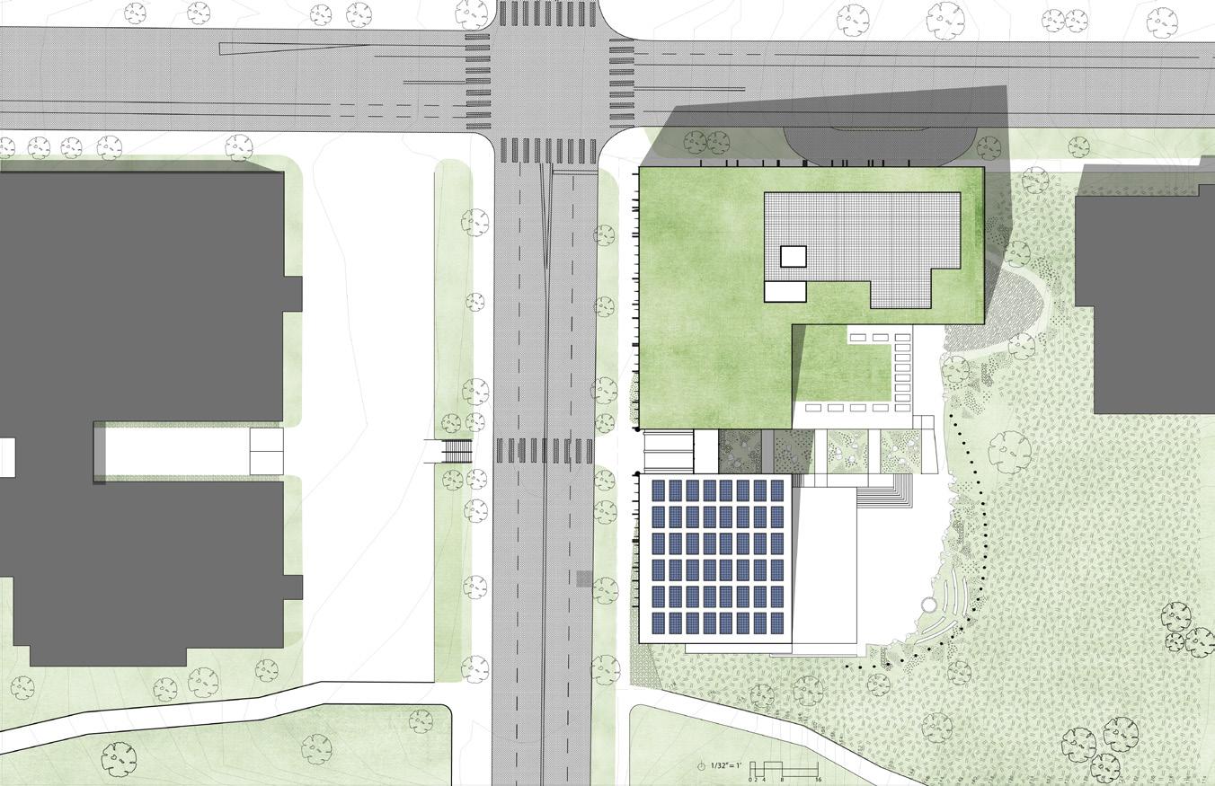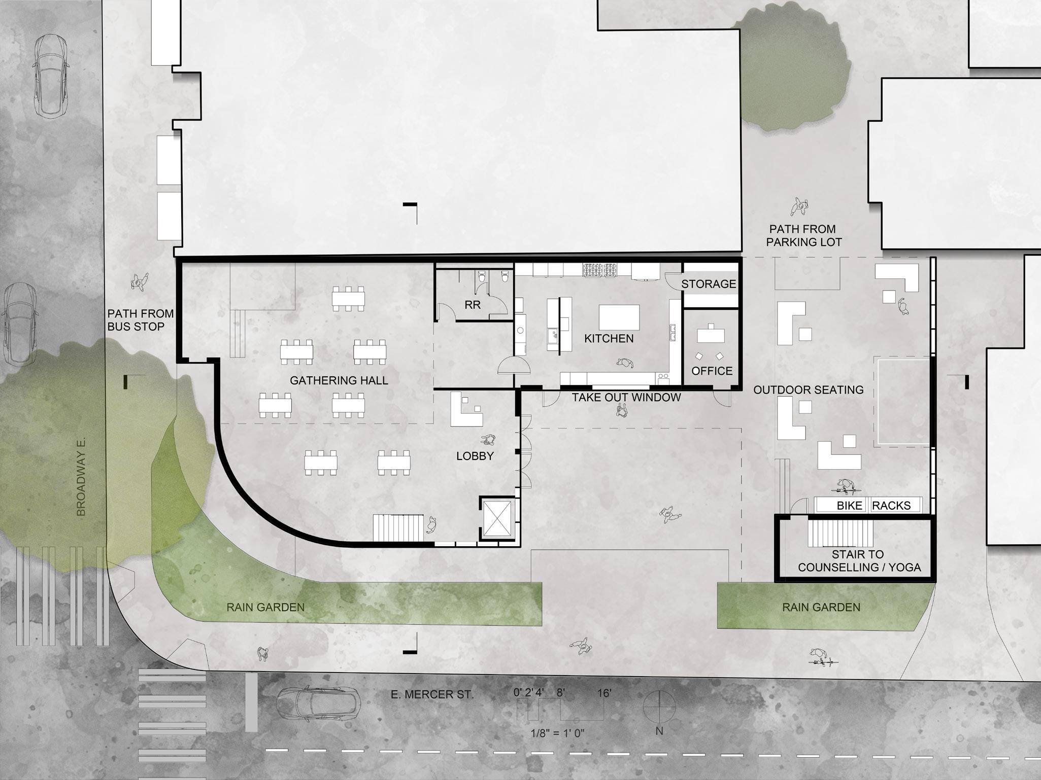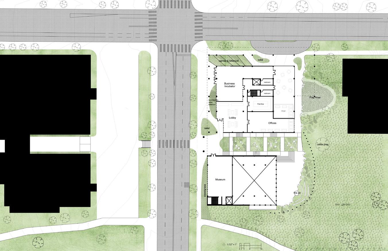 Located at South Edmunds St and 37th Ave South is the Columbia City Urban Food Center. The space includes indoor and outdoor grow facilities, a library, a market, a kitchen, and a teaching kitchen. The space is designed to mimic other urban food gardens within an enclosed structure. The intent is to teach the local community the power of becoming selfsustainable and bring people together with a common goal of teaching and learning. The Columbia City food market occurs every Sunday during the summer months and ends at this intersection which I believe would be the main factor to bring in new users. The bar and dining space is meant to draw in a younger crowd to the second floor after hours to celebrate the beautiful structure.
