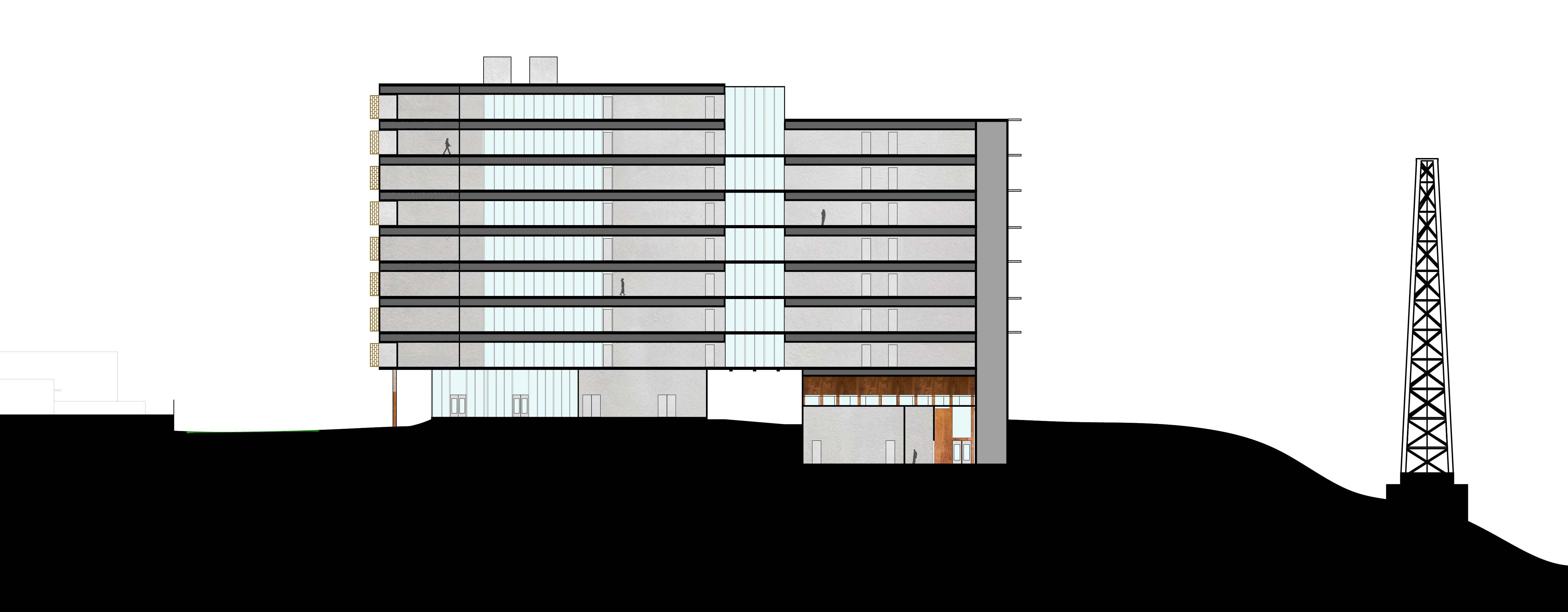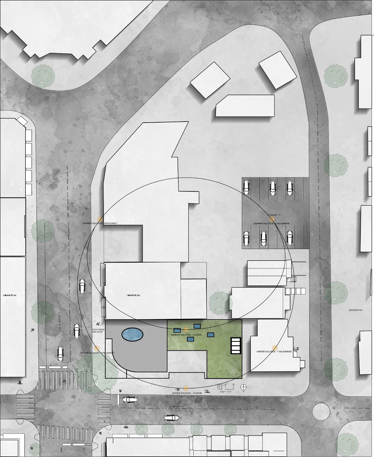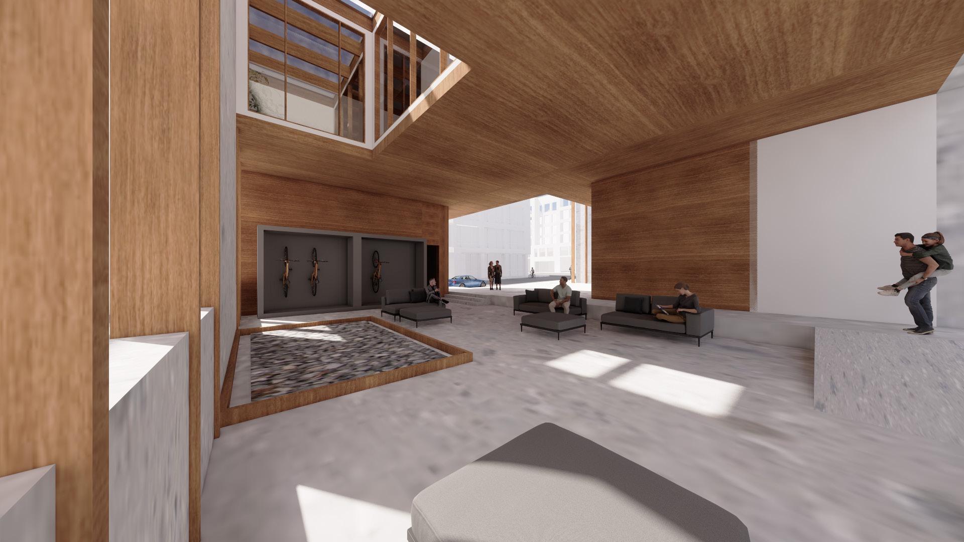 In conjunction with the Seattle Indian Health Board, the Indigenous Community and Residential Center intend to pay homage to the Indigenous community of the past, present, and future. The proposed project provides the community with affordable housing that intentionally mimics the surrounding area facade principles while allowing the materials to verbalize the indigenous connection. There are two structural towers that consist of eight residential floors resting above a daycare center, gathering hall, kitchen, business incubator, museum, office space, and an outdoor seating patio. Splitting the two towers is a community garden that focuses on native vegetation that has been utilized within the indigenous community for food, medicine, tools, and functional use.