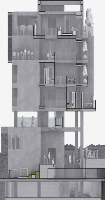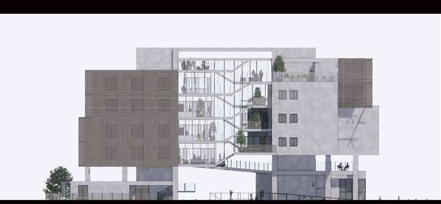 BB′剖面圖 0 100 200 400 800cm 800cm 停車場 客廳 學習空間 客廳 工作空間 客廳 工作空間 工作空間 學習空間 客廳 學習空間 學習空間 工作空間 城市廣場 運動空間 露台 停車場