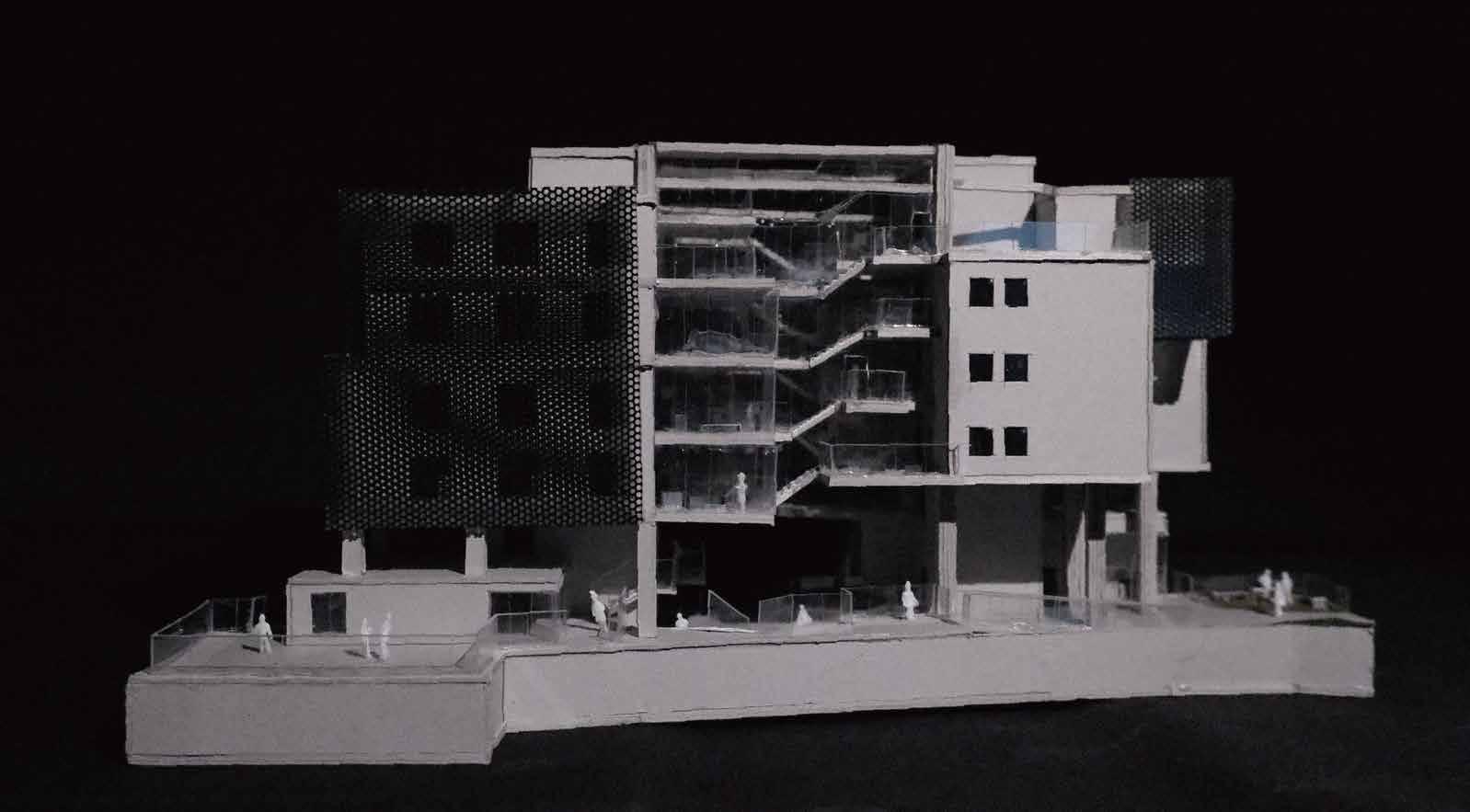 同時也回應了基地不規則的地勢 刻意使用透明的材料 增強居住單元與公共空間的自明性