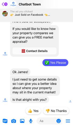 Paid and organic traffic through your Facebook Messenger will build your 'Messenger List'. Create property listing ad campaigns to build upon your Messenger List to assist in connecting buyers to sellers by prospecting by area with 'Just Sold' campaigns This also assists in creating custom audiences based on information collected by the chatbot This helps Facebook drive more engagement to your page