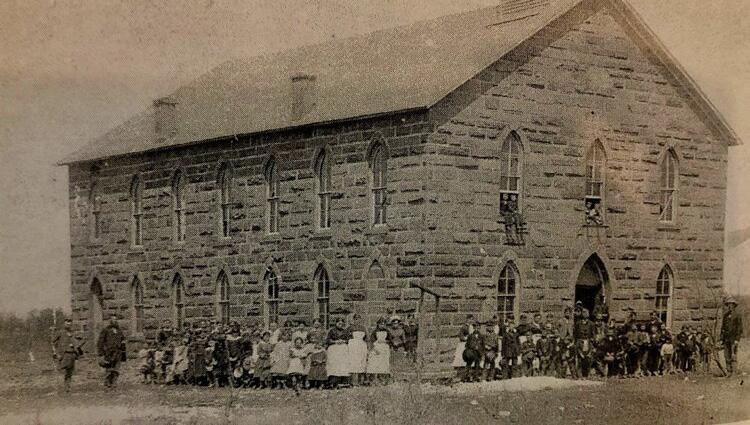 The present Buffalo Gap school building was erected in 1913 from the same sand stone blocks that composed the once famous Presbyterian College.