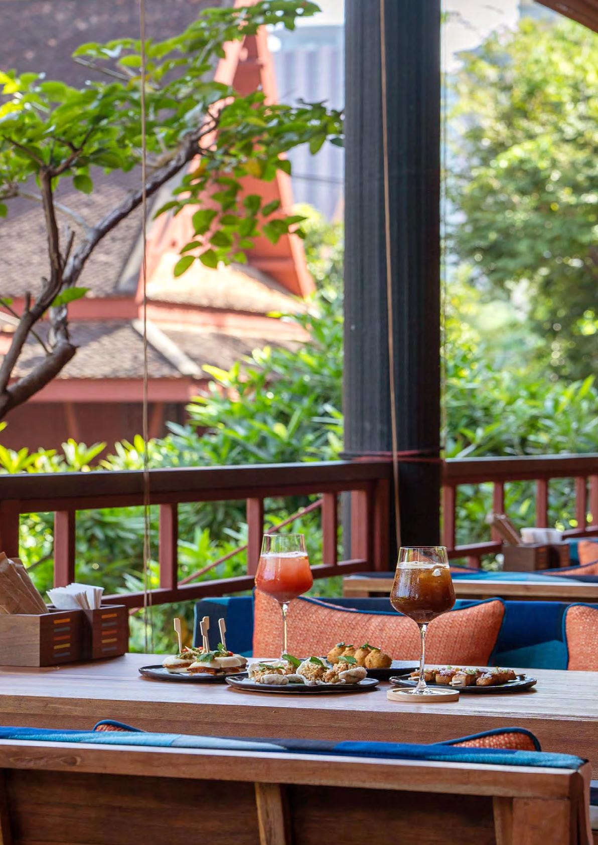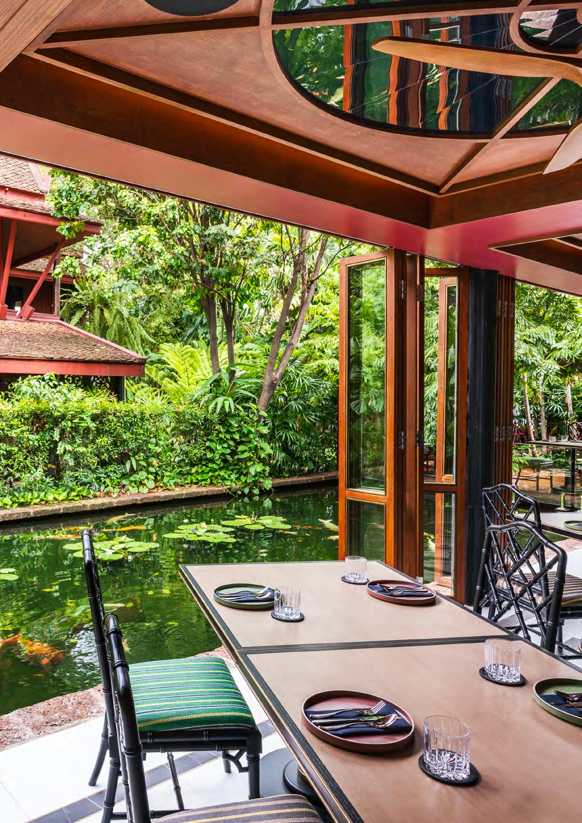 Experience the vibrant energy and flavors of Thailand in our outdoor dining area facing the pound. Authentic Thai cuisine made from the freshest ingredients, served in a relaxed and comfortable atmosphere. To privatize the terrace for your private cocktail party from 18:00 to 22:30, the minimum spend is THB 20,000++ private cocktail