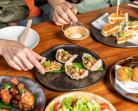 Step into the warm embrace of Jim’s Terrace - a friendly and welcoming haven to unwind with a drink and savor breathtaking views. Our bar seamlessly blends tables and counters, creating an immersive experience of natural beauty. Indulge in craft cocktails or beer amidst lush landscapes and stunning architecture. Our dedicated staff is here to ensure an exceptional experience for every occasion. Come and explore our delightful selection of Thai tapas - small plates of homemade and traditional specialties with intense flavors and premium local ingredients. Join us on our lovely terrace overlooking Baan Jim, the perfect setting for your private cocktail party! To reserve the terrace from 18:00 to 22:30, the minimum spend is THB 60,000++. We can’t wait to welcome you with open arms!