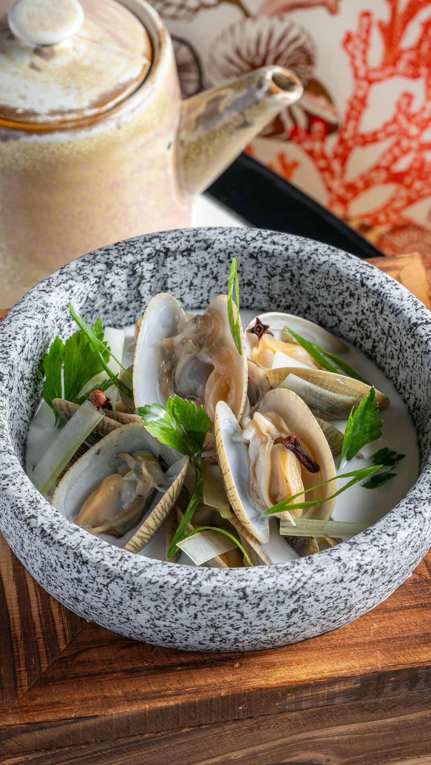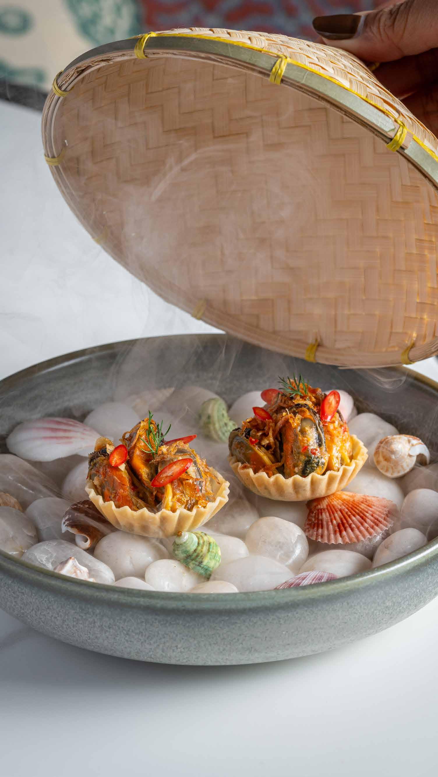 Smoked Seasonal Thai Andaman or Gulf of Thai Mollusk with Thai Herb and Spice Relish on Crispy Tartlet (Seasonal Seafood of the Day) Tart Hoi Rom Kwan 190