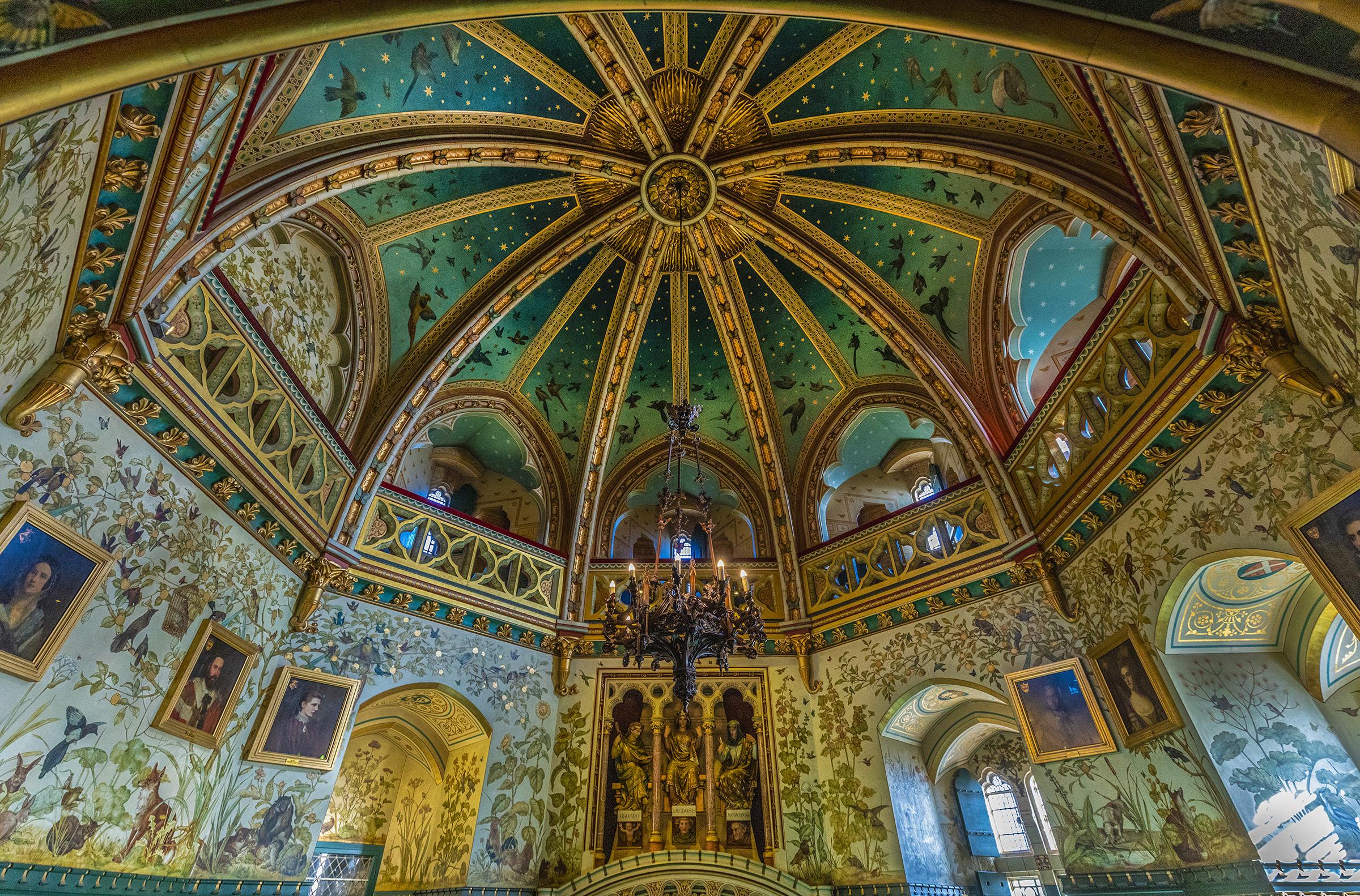If you also use HDR for dim environments, such as large cathedrals and dim cavernous palace and castle interiors, you’ll need a C2 function that stores different camera settings. For example, instead of f/32 for complete depth of field, you’ll need the largest aperture the lens has to offer to gather as much light as possible. Usually in famous places visited by throngs of tourists, tripods are not allowed. That was the case in the interior of Castle Coch, in Wales, on the previous page and in the ‘Arab Room’