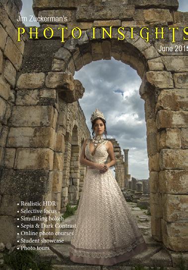 On the cover: A Siberian lynx photographed during Jim’s annual winter wildlife workshop in Montana. This page: A bride on the steps of a fantasy cathedral created with AI using Midjourney software. Learn how to do this in Jim’s upcoming online AI course starting August 5.