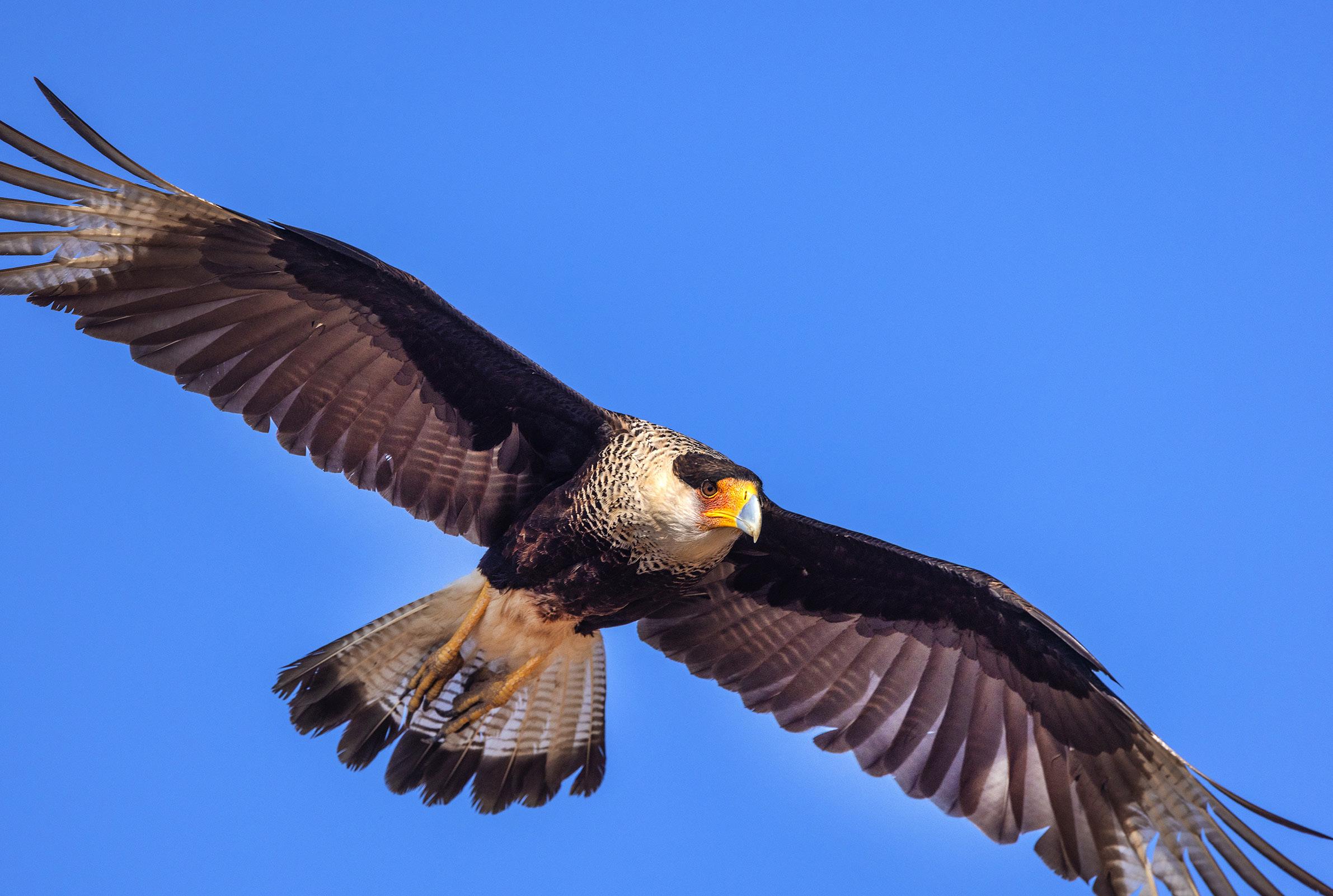 At first glance, it's easy to see the problem with this picture of a crested caracara. The bird had flown too close to my shooting position given the focal length I was using, and the wing tips were cropped out. At second glance, I thought maybe this isn't that bad because the compelling face of the raptor and the spread of the tail feathers is the real focus, and the missing tips of the wings don't really matter.