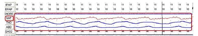 Hypopnea This is an 18 second hypopneic event. The airflow signal is reduced by approximately 50% during this event.