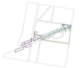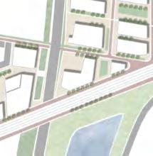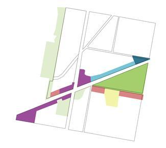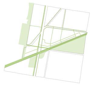 A buffer zone will be established between the production and residential areas, featuring a dense pedestrian network. The primary green corridor will extend from the railway into the site, creating an ecological belt. This green network will serve as a crucial ecological link and recreational space, promoting environmental sustainability and enhancing the overall quality of urban life.