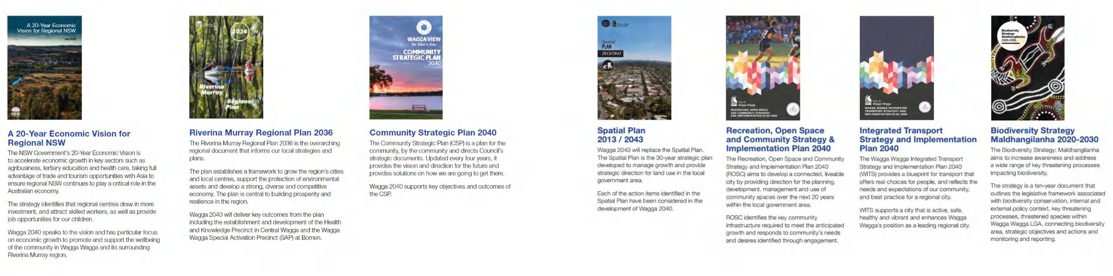 Provides clear strategic indicators for the developmentof Wagga Wagga over the next 30 years. lt is the keystrategic planning document for directing and managingurban growth and change.