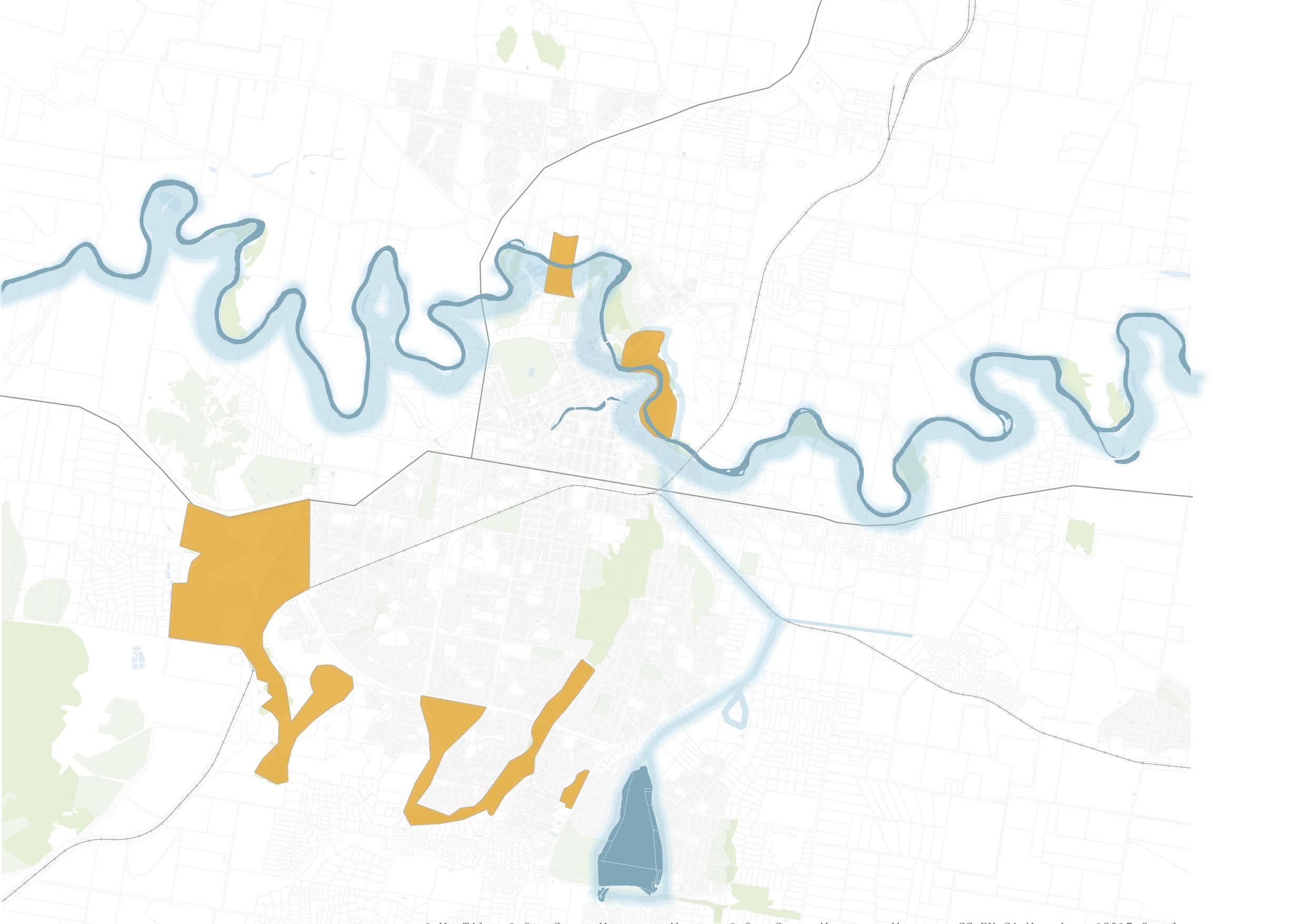 Key Site Three builds on the site's existing conditions and focuses on the Murrumbidgee River to create potential spaces and enhance connectivity. This is achieved by improving people's interaction and engagement with the Murrumbidgee River, particularly along the river corridor and the 15-minute core area in the CBD.