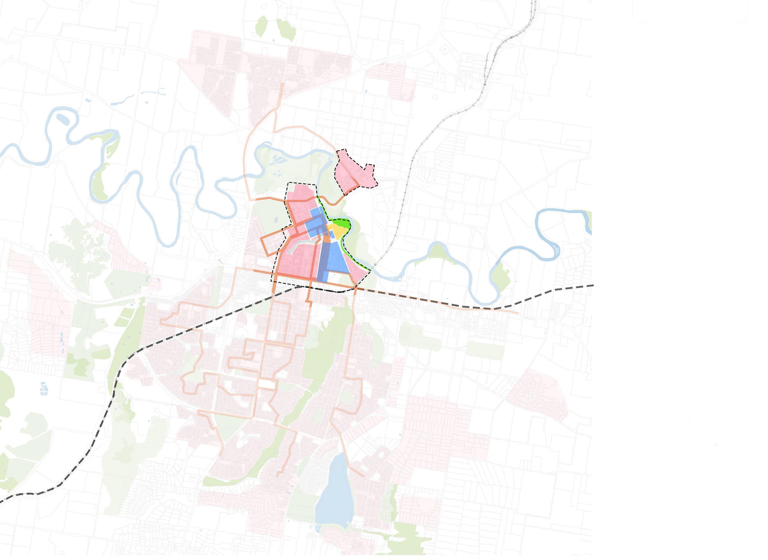 The Waterfront Precinct, situated near the Wagga CBD area and the Murrumbidgee River, aims to enhance the waterfront area and its connectivity. The Station Precinct focuses on the new HSR station, incorporating related industries and facilities to create a transportation and economic hub. Lastly, the Health and Knowledge Precinct is designed to foster growth in healthcare and education sectors, supporting a diverse range of services and institutions. The subsequent section will detail the key interventions and strategies to achieve these objectives, ensuring cohesive and sustainable development across all precincts.