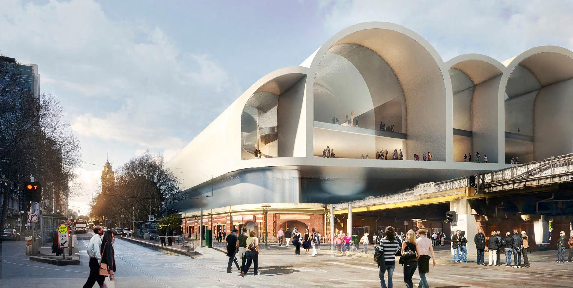 Key Site One builds on the site's existing heritage building and focuses on the relation between the north and south side for pedestrians, enhance connectivity. This is achieved by connecting main streets, increasing the types of buildings, upgrading and elevating the exising station. To better realise the goal of building a 15-minute city. https://www.archdaily.com/413042/the-flinders-street-station-shortlisted-proposal-hassell-herzog-and-de-meuron/5202a3abe8e44ebcd300013c-the-flinders-street-station-shortlisted-proposal-hassell-herzog-and-de-meuron-image?next_project=no