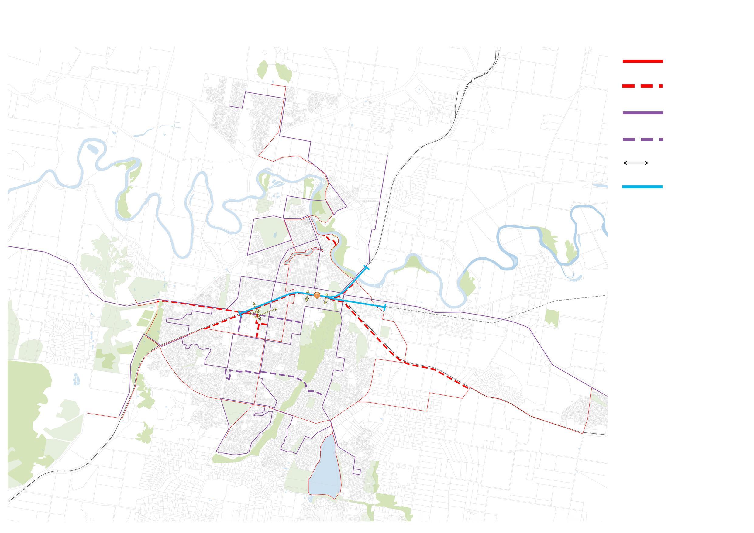 Currently, Wagga's bus system averages one trip per hour or longer and does not cover several key destinations. To accommodate the travel needs of tourists, a new bus route plan is necessary. The solid line on the map represents the existing 15-minute bus catchment area from the station, while the dotted line indicates the proposed future bus route. This new route will ensure comprehensive coverage and more frequent service, enhancing the overall public transportation network and better serving both residents and visitors.