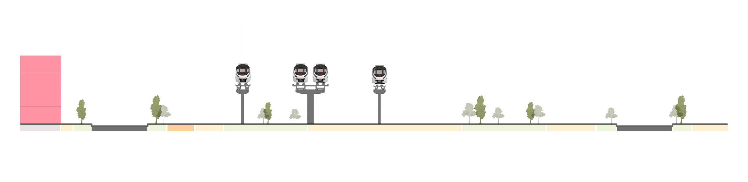 The second key initiative involves utilizing the space beneath the elevated tracks. With the tracks raised, this area becomes activated and available for development. The proposal includes transforming this space into a public park equipped with relevant facilities. This transformation will enhance connectivity, particularly for pedestrians, and offer a communal space for residents. Additionally, a cycle path will be integrated along the track, expanding the cycling network and encouraging the use of active transportation.