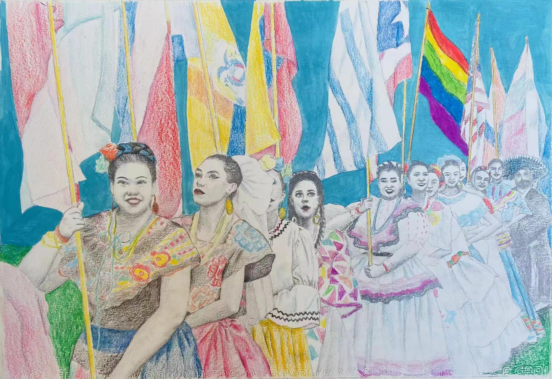 Flying colors and bright banners make up a multitude of flowing streams, gathering into a torrent flowing into the ocean of the world.