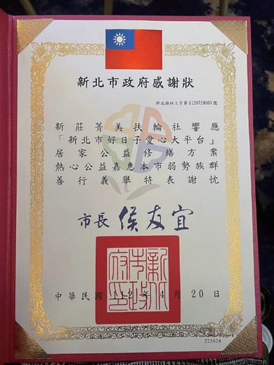 Dear Rotary Club of Xin Zhuang Jing Mei, Taiwan members,