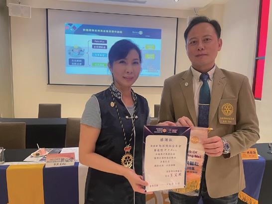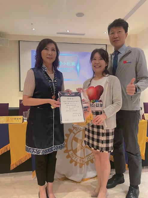 相信各位社友會繼續秉持入社時的熱誠心、服務心、奉獻 心,成為人人敬重的扶輪人,我也會延續又禾社長的精神與努力, 繼續與大家共同攜手向前邁進。