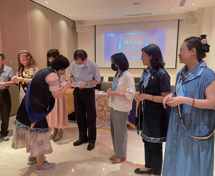 Jennifer Jones President, Rotary International 2022-23一個扶輪社能夠持續運作不是一件容易的事,必須有核心領導與中心 思想,也需要所有社友們、寶眷們的群策群力,當然從創社社長與各屆社長 慢慢積累形成的獨有文化和氛圍,更是不可或缺的基石,就是這樣的氣度與 精神,帶領各社一起向前邁進。