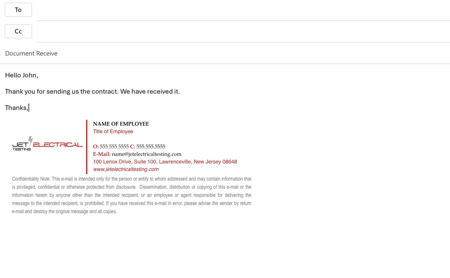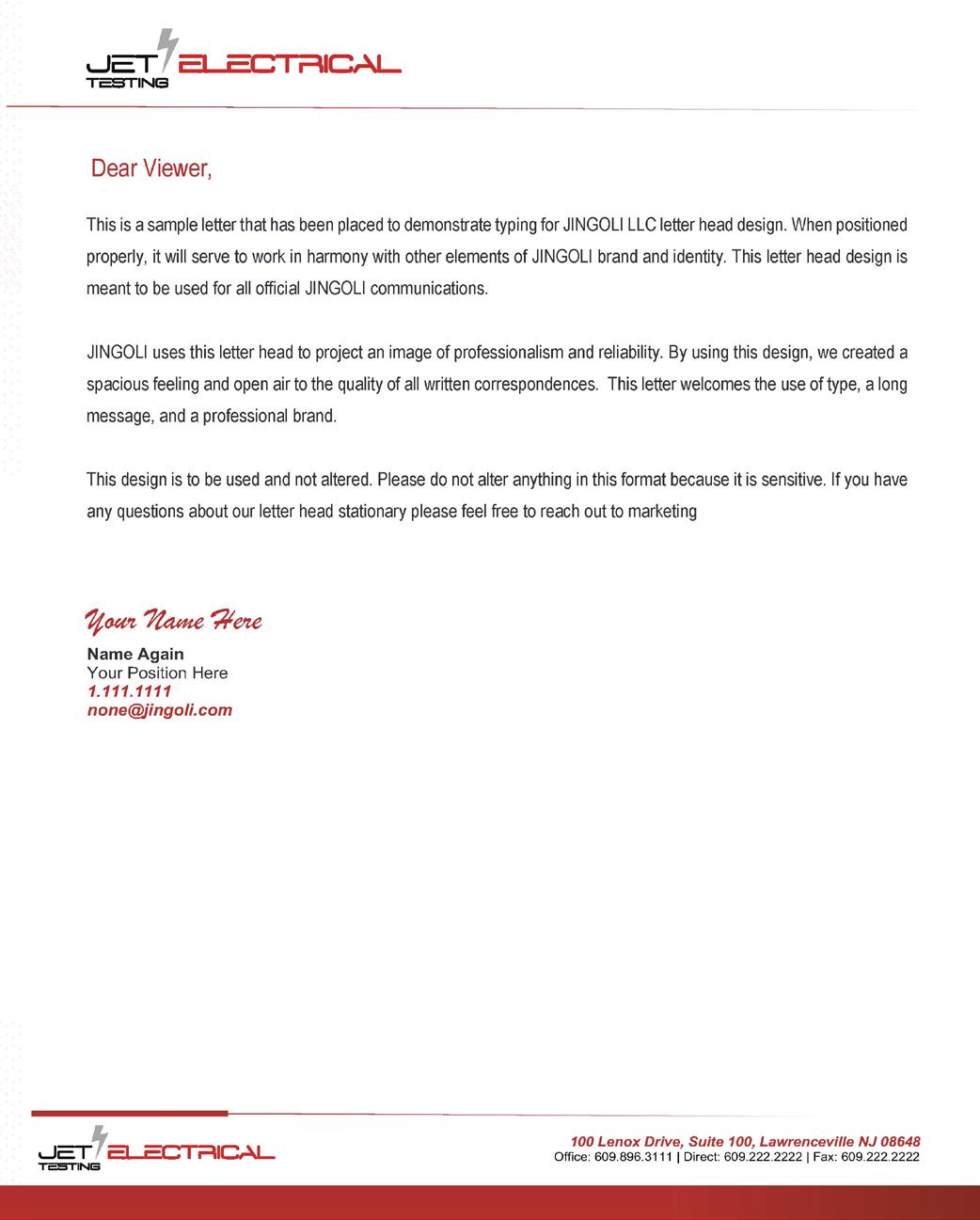 JET Electrical Testing uses this letterhead to project an image of professionalism and reliability.