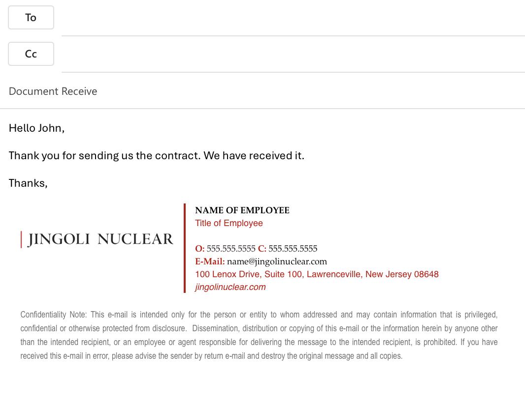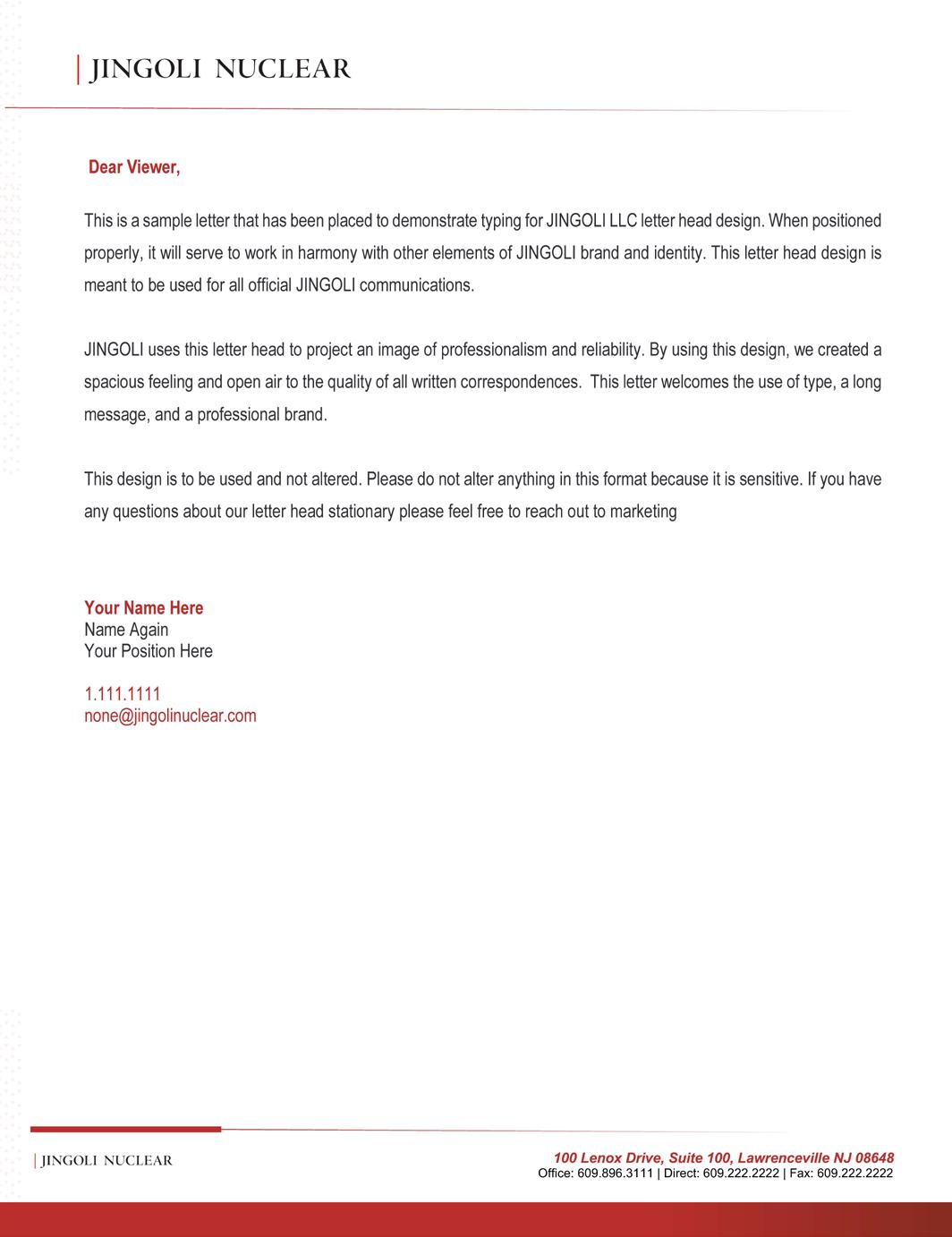 JINGOLI Nuclear Services uses this letterhead to project an image of professionalism and reliability.