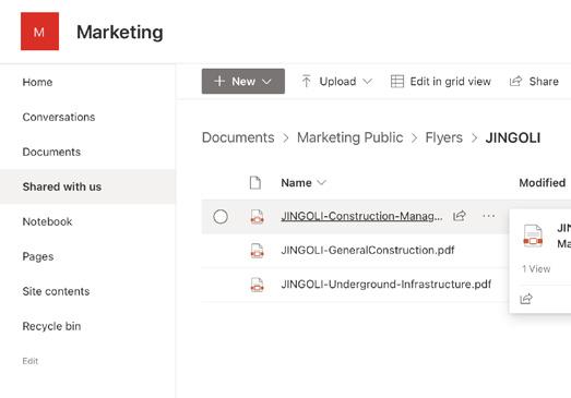 The Marketing SharePoint has a bunch of great resources for any quick access marketing materials like letterheads, company logos, and email signatures. You can access the Marketing SharePoint by following this link: https://jingolidco.sharepoint. com/:f:/r/sites/Marketing/ Shared%20Documents/Marketing%20 Repository?csf=1&web=1&e=fNxrZ6