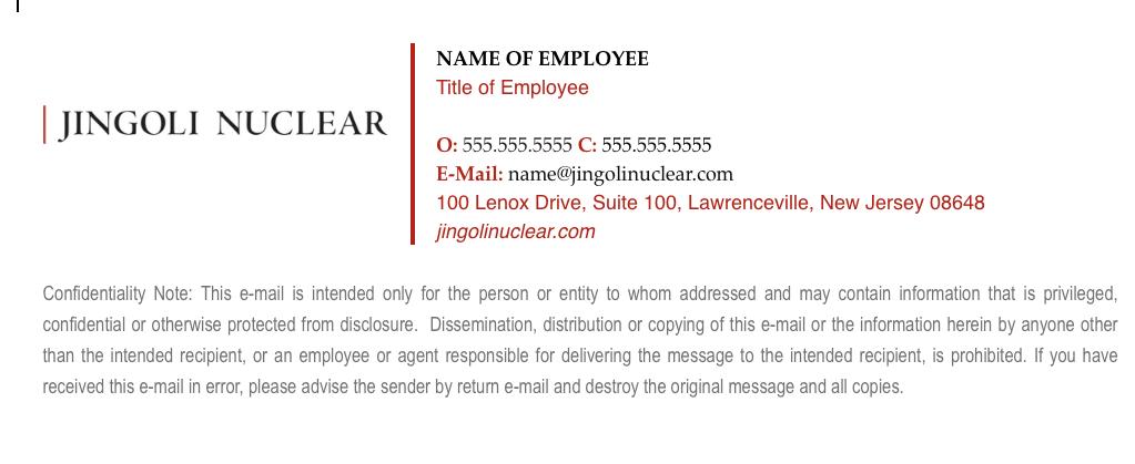 The tagline is only intended for use by JINGOLI Nuclear Services staff, digital, and print materials. Tagline use outside of professional use is prohibited. The tagline should never be should never be altered.