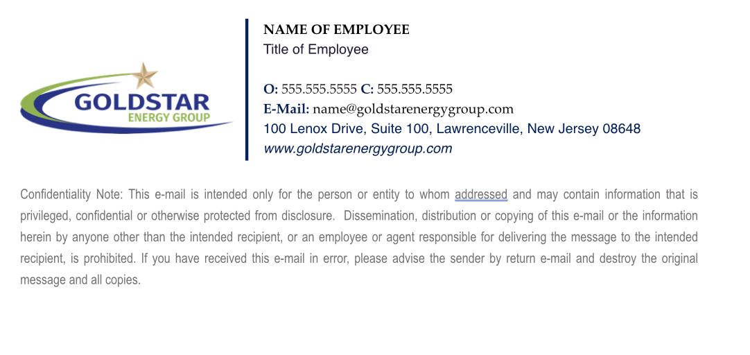 Do not alter the integrity of the signature. All Goldstar Energy Group employees, please only use the all company logos if you liaison with our family of companies.
