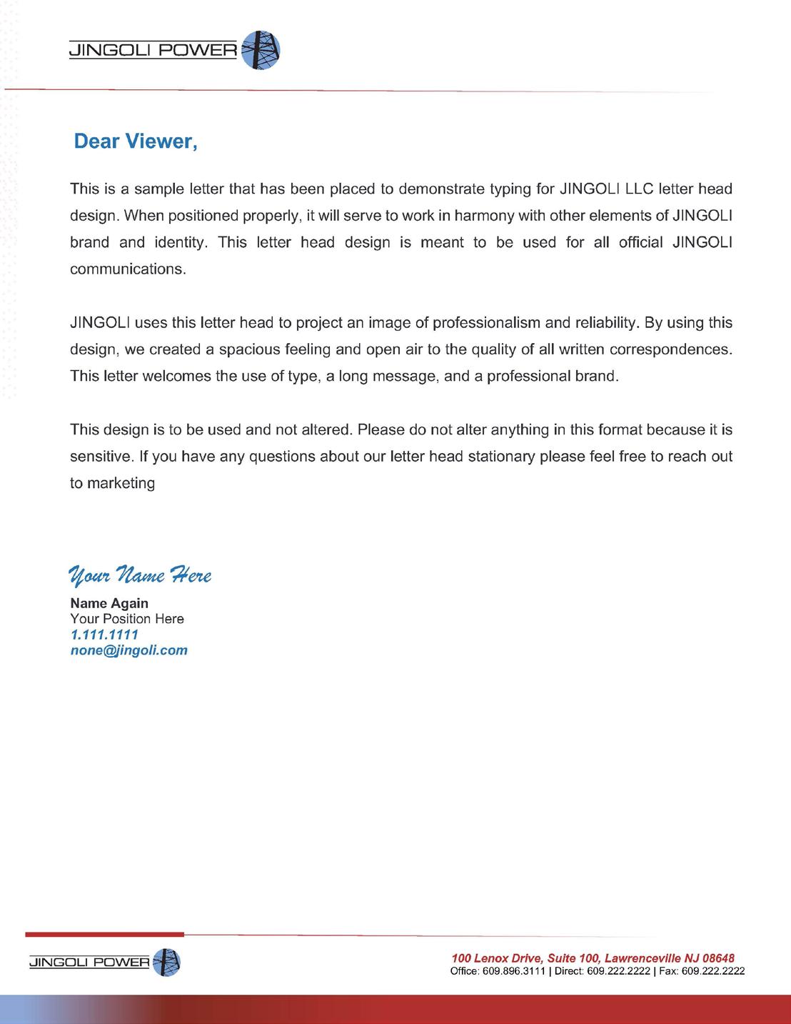 JINGOLI Power uses this letterhead to project an image of professionalism and reliability.